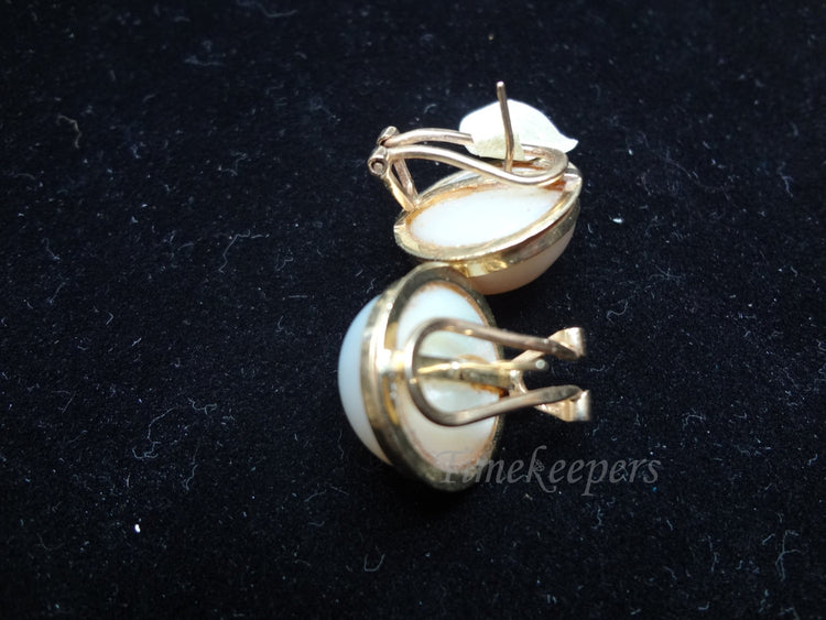 For Sale: (1) Pair Women's Half Pearl Pierced Earrings set in 14K Gold with Safety Clips