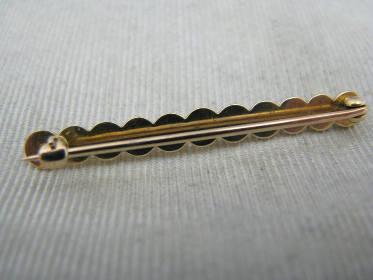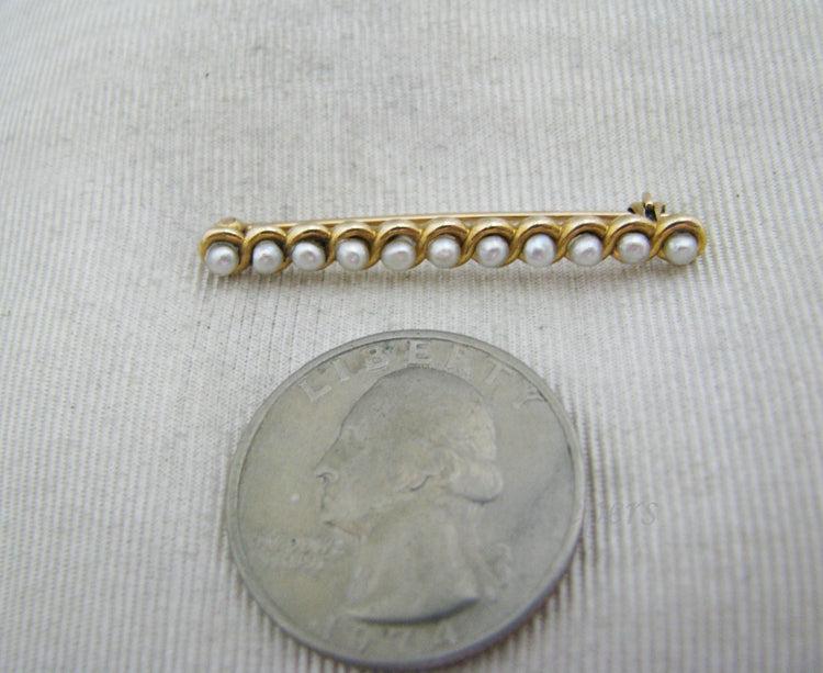 a1117 Beautiful Vintage Pearl Bar Brooch in 14k Yellow Gold