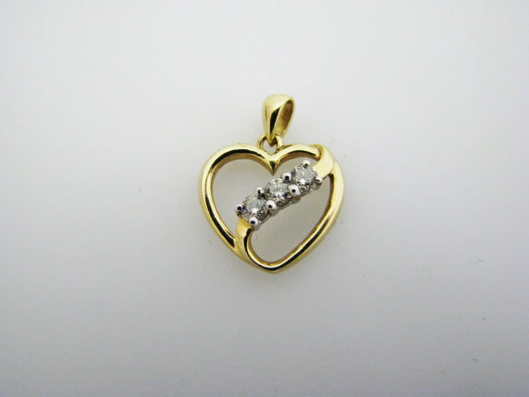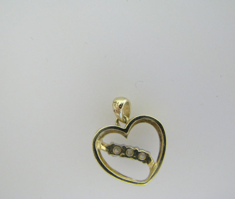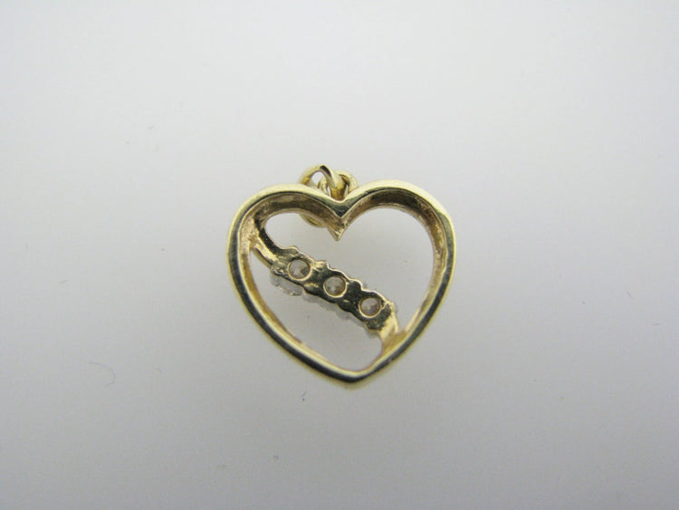 c130 Beautiful 10k Gold Heart Pendant with a Ribbon of 3 Diamonds Across