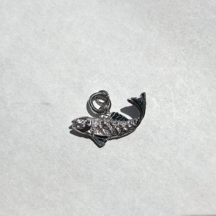 e093 Vintage Silver Tone Swimming Fish Charm Pendant