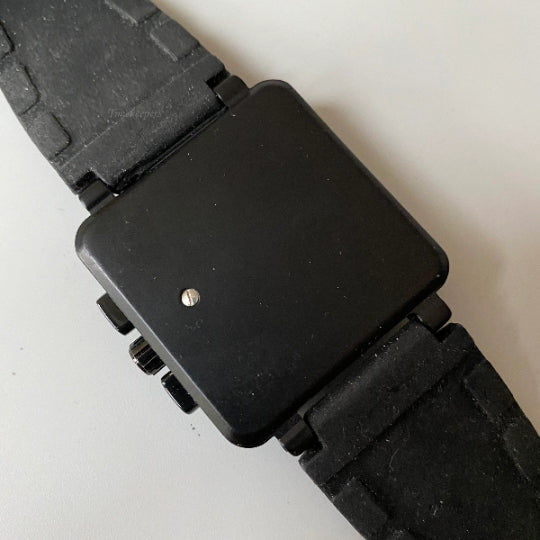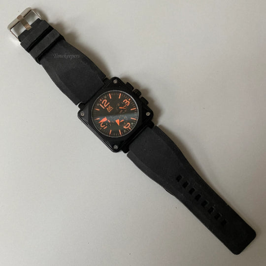 Black Band. Black Tone Case, Orange colored hands, hour and non-numeric hour marks.