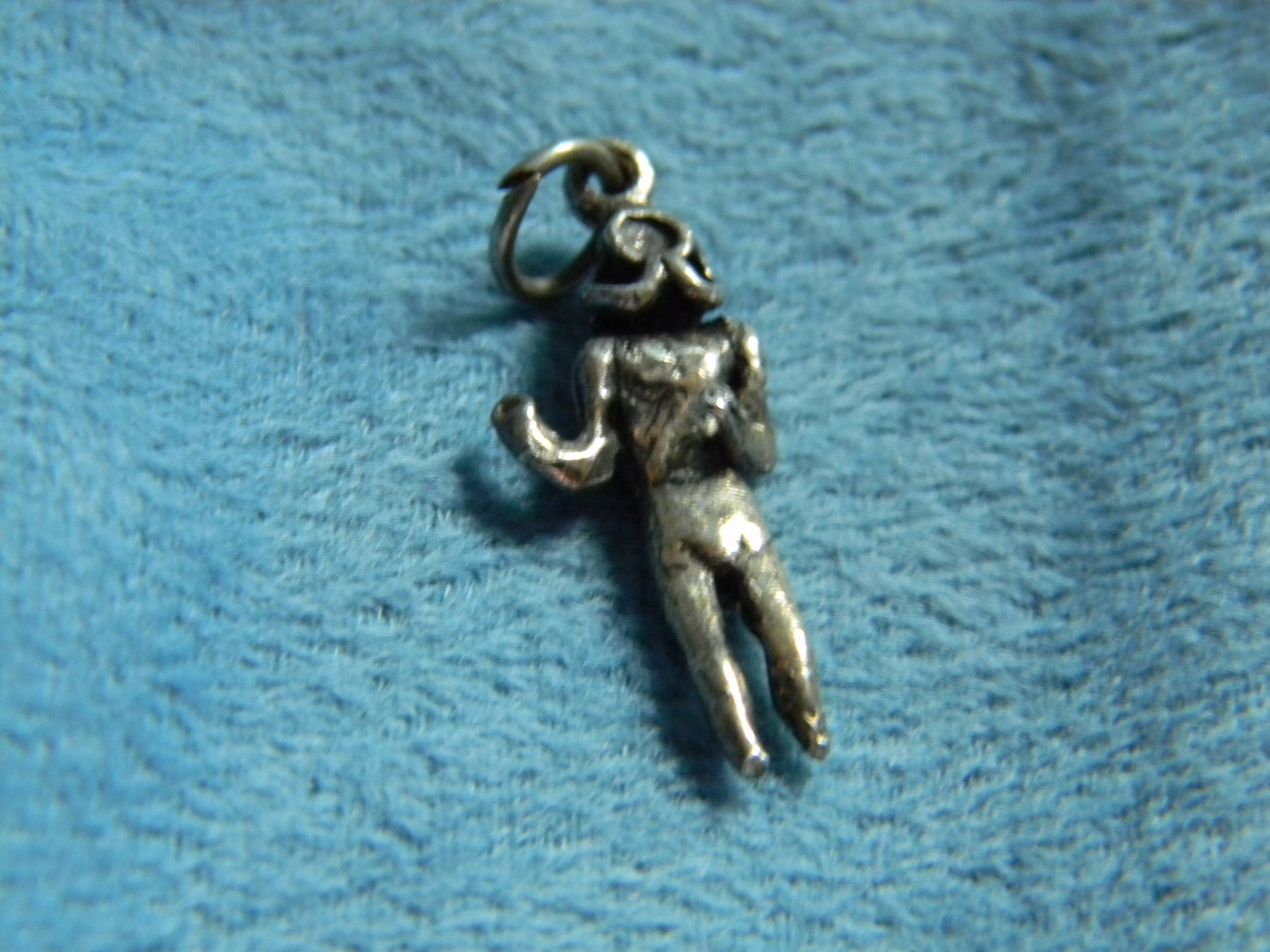This is a silver tone scuba diver charm/ pendant with no markings.  He does not have any feet or hands, not sure if that was the way he was made or if they broke off by the time he made his way to us.