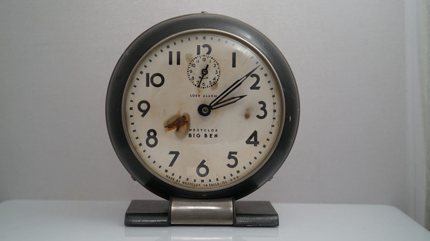 Good condition Westclox Big Ben. Clock keeps time ok and its alarm is mostly on time.