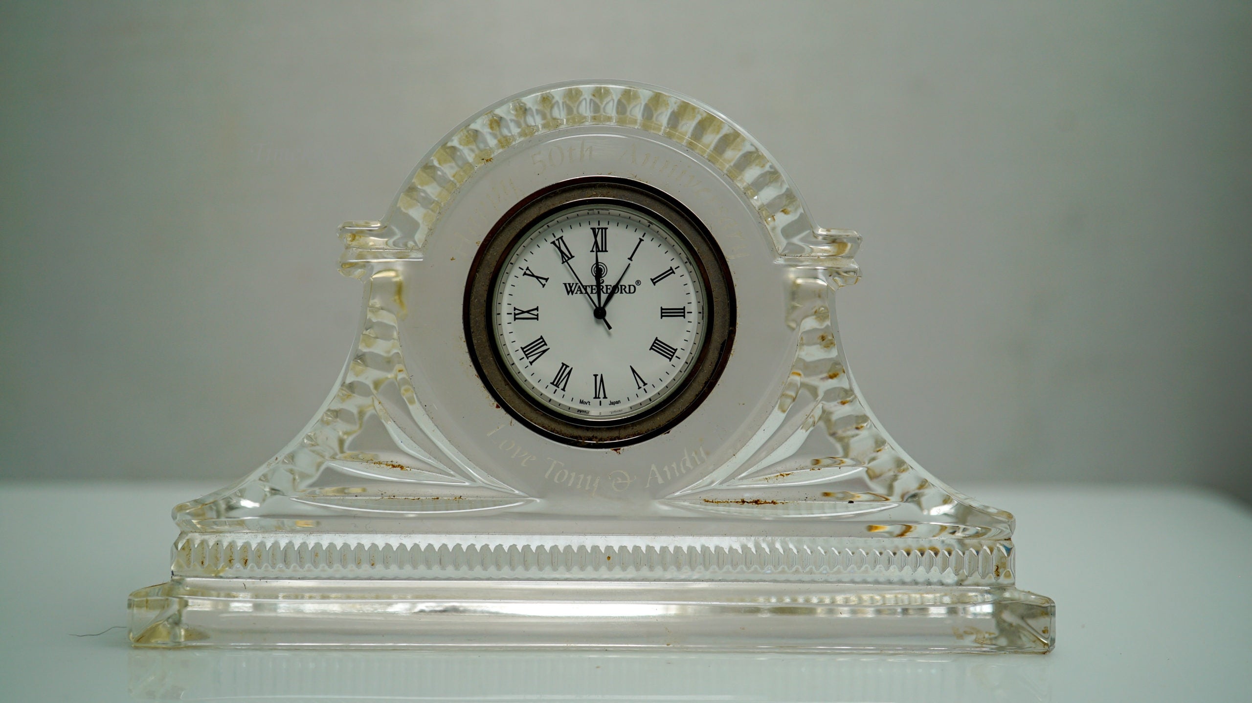 Excellent condition Waterford clock. This clock uses a Seiko movement and it is a crystal clock. It works well and its dimensions are as follows.