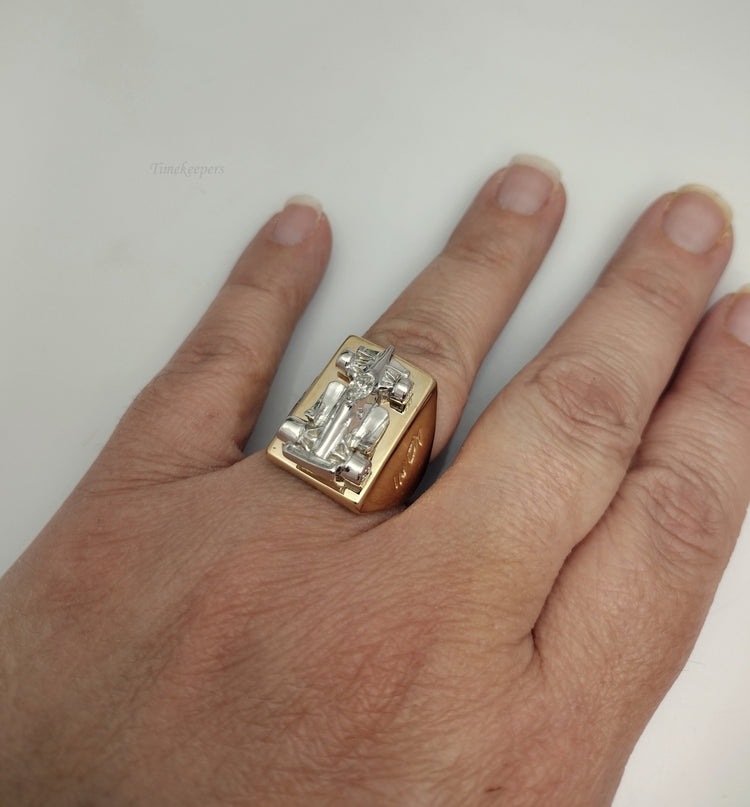 For Sale: (1) k621 Handsome Men's Indy 500 Ring set in 14kt White and Yellow Gold