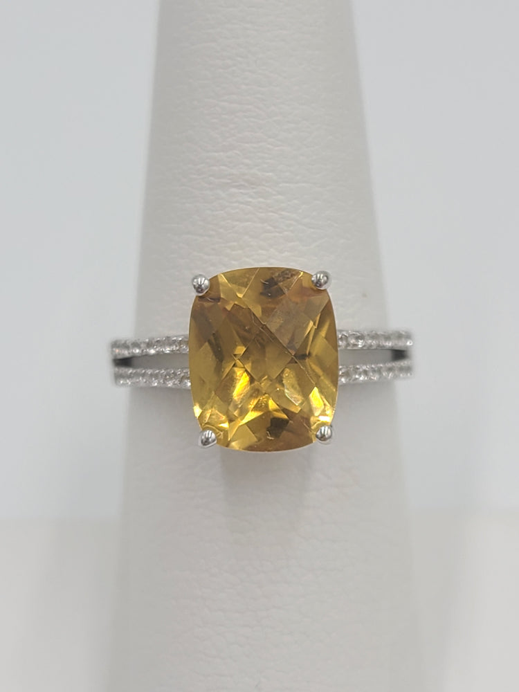 k655 Beautiful Ladies Sterling Silver Citrine and Cubic Zirconia Ring