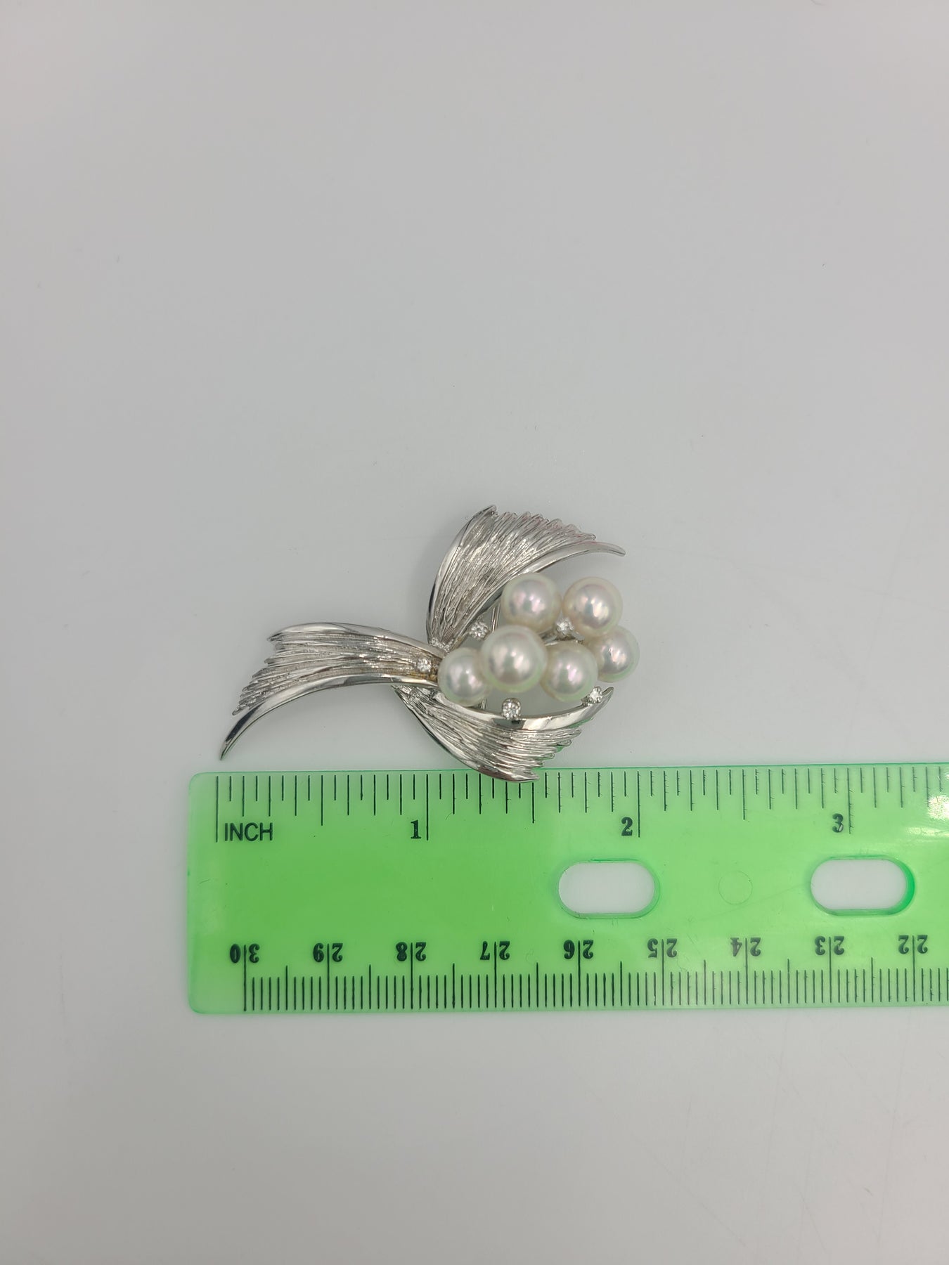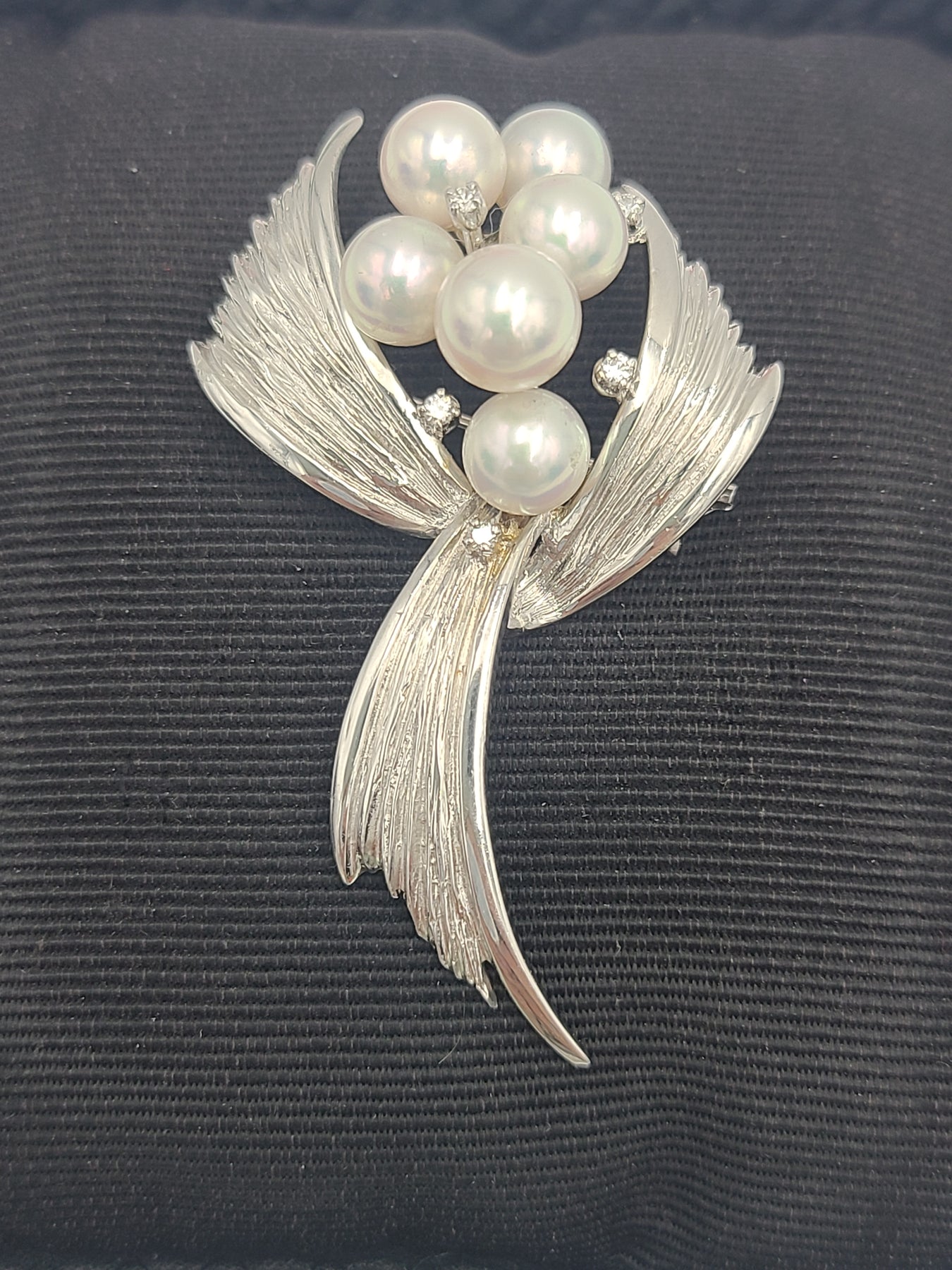 18kt White Gold Freshwater Pearl and Diamond Pin