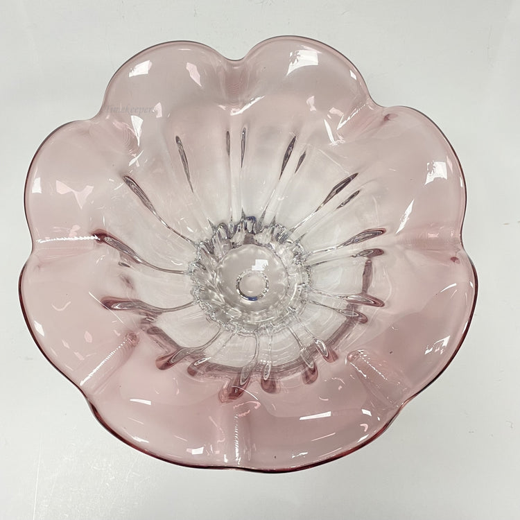 m029 Vintage Soft Pink Glass Flower Shaped European Salad or Candy Serving Dish