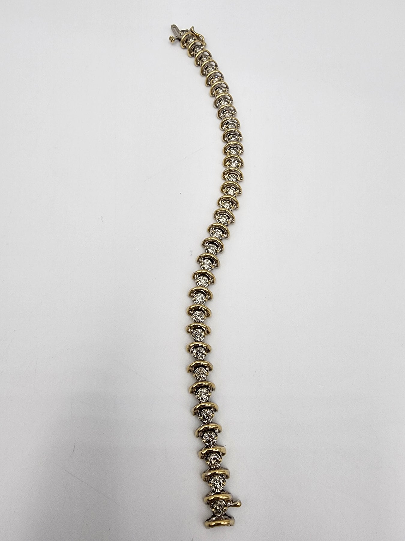 For Sale: m722 Stunning 4.80cts Two Tone Diamond Tennis Bracelet in 14kt Gold