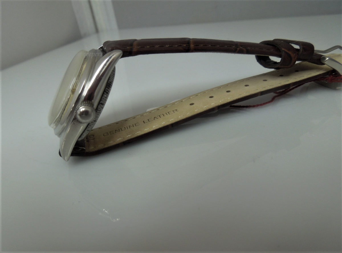 Nice classic men's mechanical Rolex Precision wristwatch. Date and Crown are located at the 3 position.