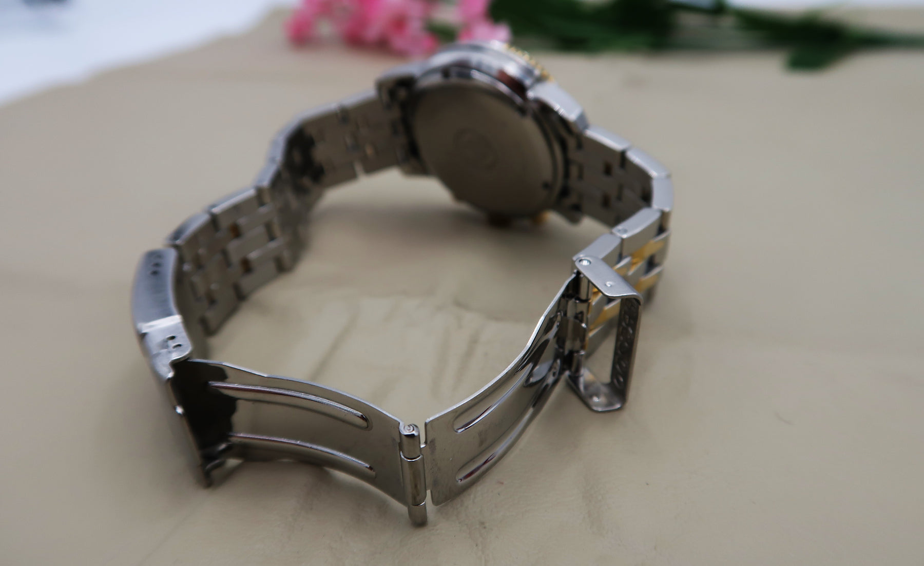 Pre-owned: This watch shows wear.  Scratches on the band, the bezel and the back of the watch.