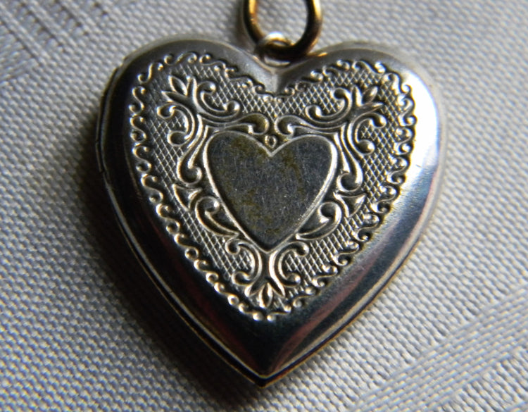 p464 Unique Heart Locket Filigree Design Silver Pendant (No chain)