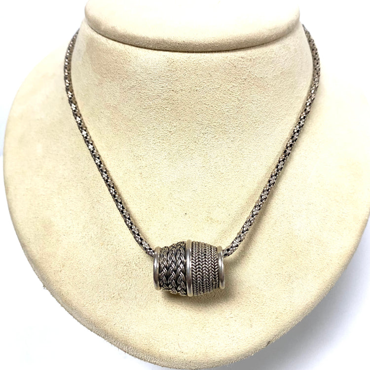 p484 Vintage Sterling Silver Chain Necklace 16" Long & Sterling Sliding Pendant