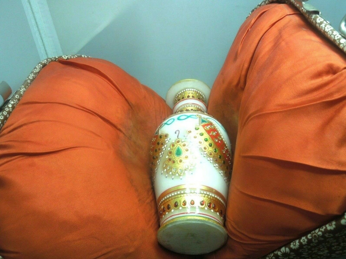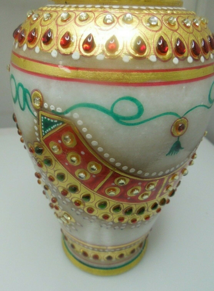 This is marble Meenakari Motif Hand Painted Vase decorated with Colorful Rhinestones...(few rhinestones are missing, but really not noticeable and can be easily found in any Craft Store/Dollar Tree)