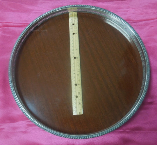 For Sale (1): q577 Vintage 14" Silver Plated Edge Wood Grain Formica Serving Platter Tray Foot