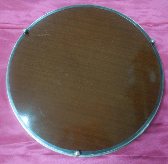 q577 Vintage 14" Silver Plated Edge Wood Grain Formica Serving Platter Tray Foot