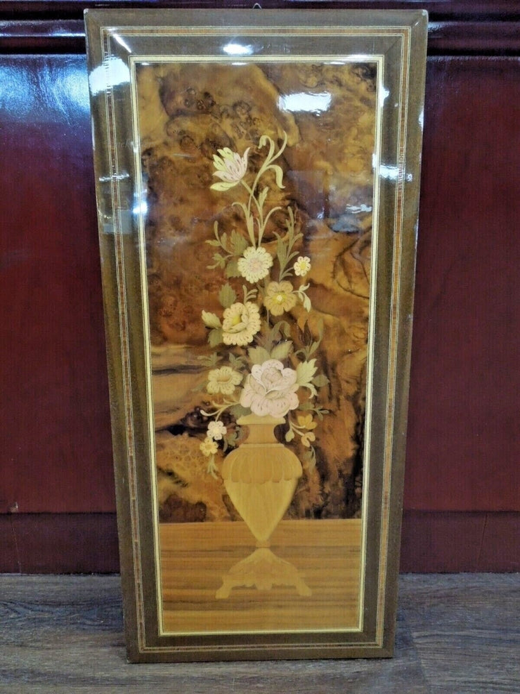 For Sale(1) : r195 Vintage Rinaldo Rondelli & Dini Inlaid Wooden Wall Hanging Floral Made In Italy