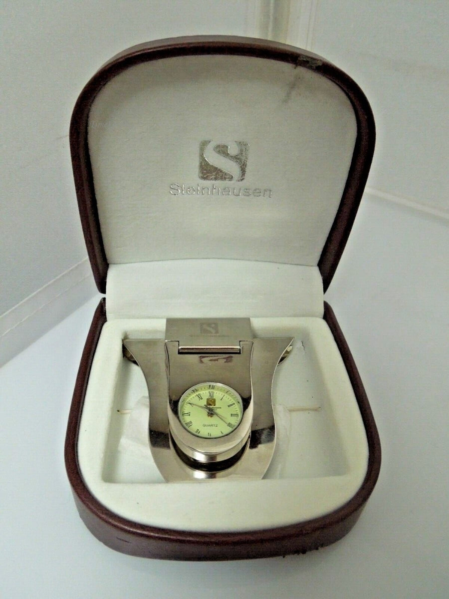 r341 Vintage Steinhausen silver tone belt buckle in original case
