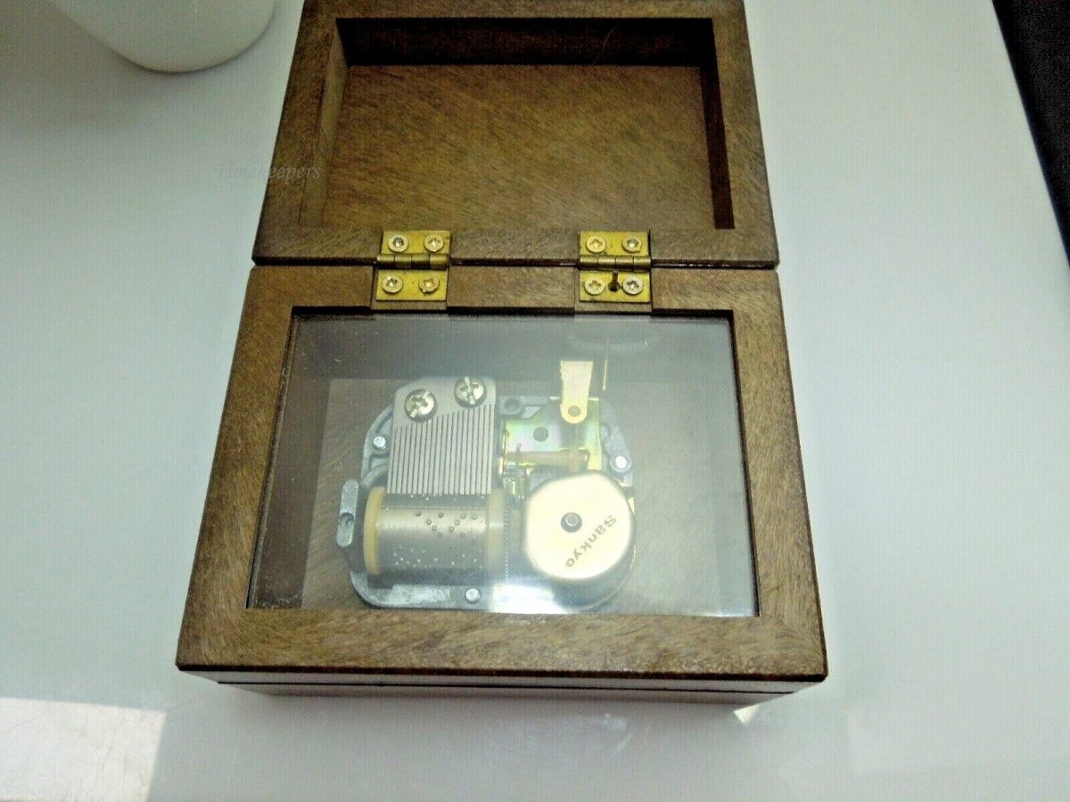For sale: (1) r377 Vintage 1975 Wood Music Box Two Kids Picture Sankyo Movement Made in Hong Kong