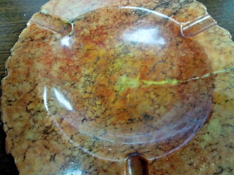 Vintage,Mid Century Hand Carved Marble Ashtray Heavy Orange,RARE,7” Round
