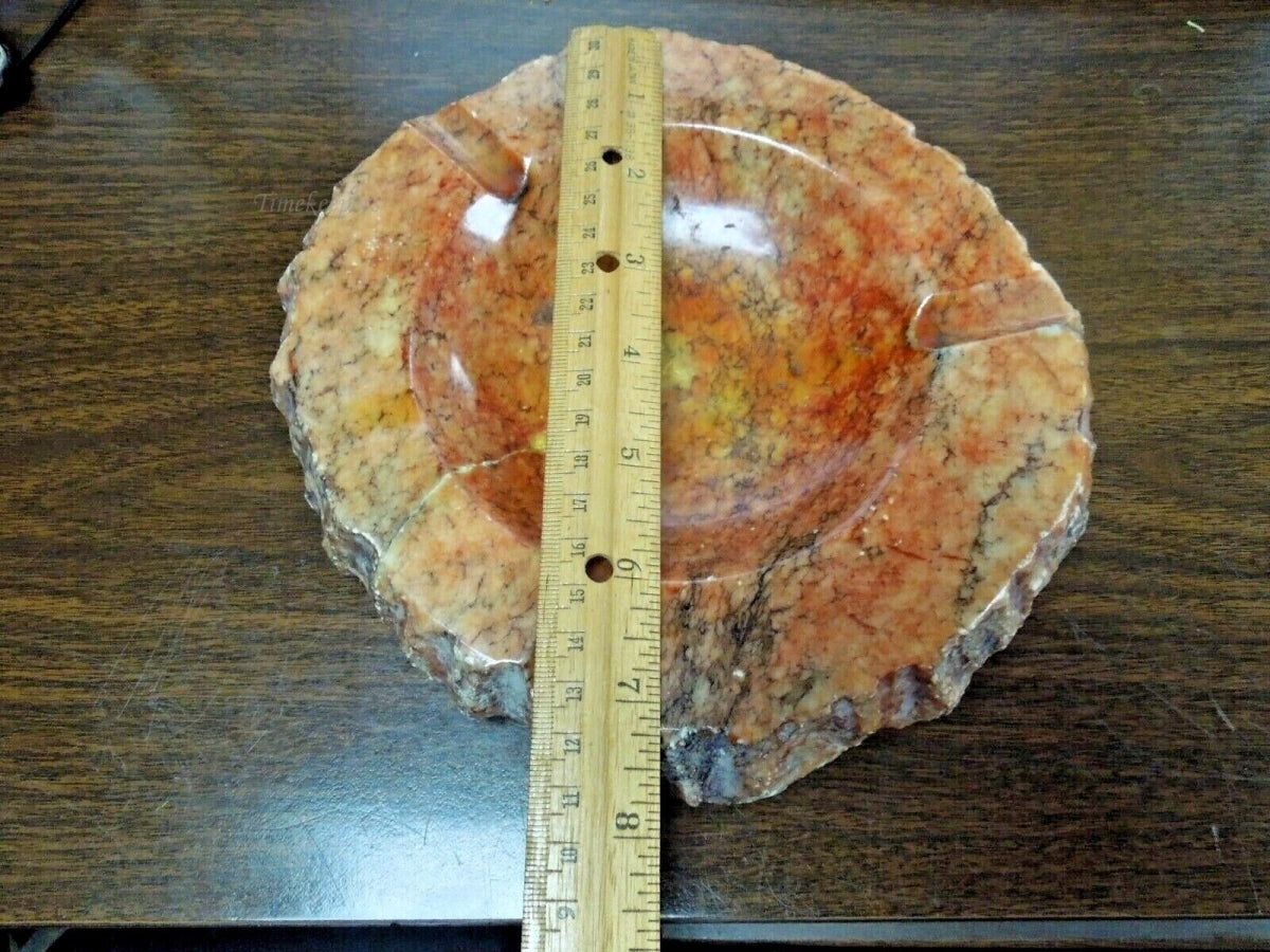 For Sale: (1) r592 Vintage,Mid Century Hand Carved Marble Ashtray Heavy Orange,RARE,7” Round