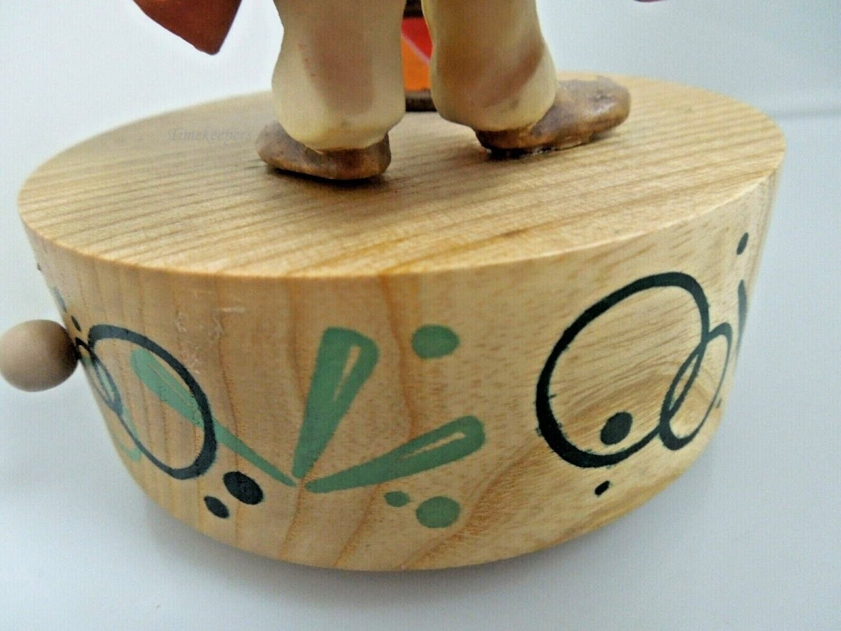 This adorable vintage Anri music box is in good condition. It plays and turns beautifully with no issues and the little knob in the back works perfectly to stop the box mid song. The song is “Candyman.” A great addition to your Anri Collection. It has a 3 3/4 inch base and stands 5 inches tall. Hand painted.