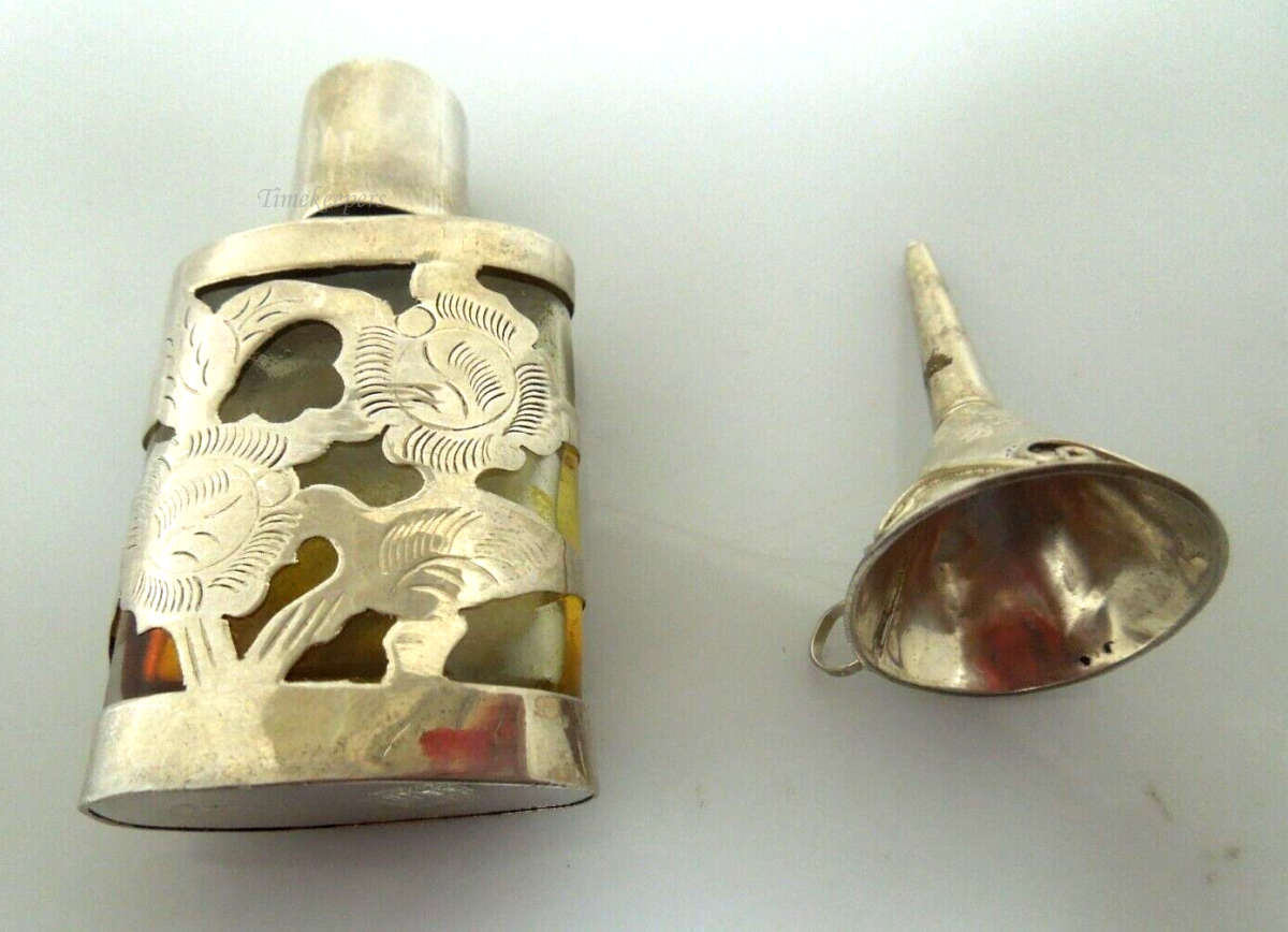 For sale: (1) s193 Vintage Miniature Glass Perfume Bottle with Sterling Case and Sterling Funnel Mexico