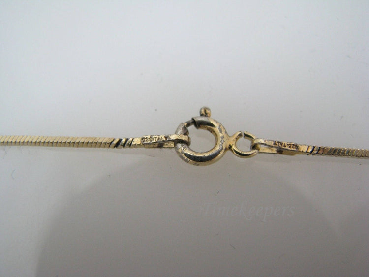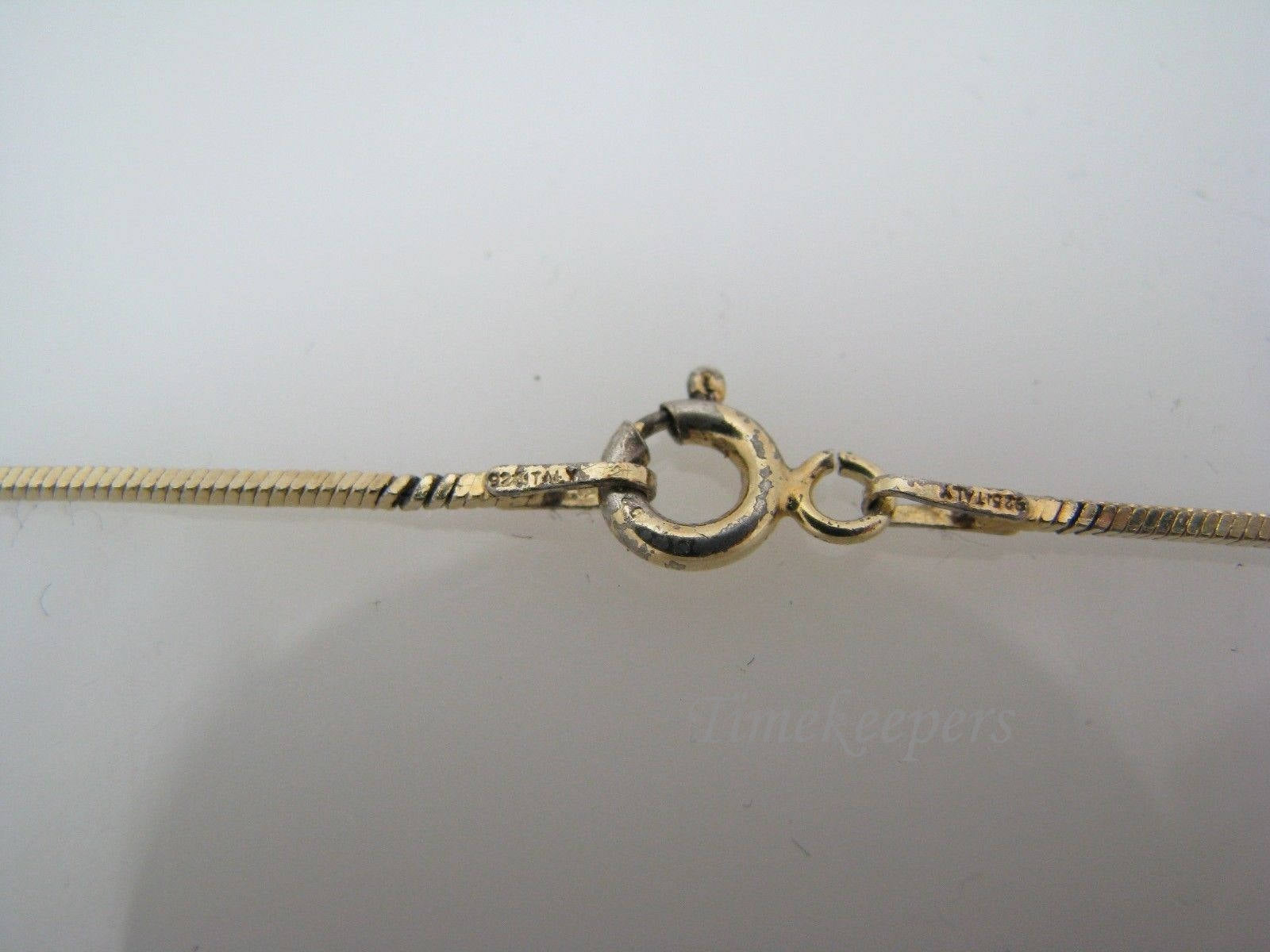 This sterling chain is 15" long. It features a gold wash that is coming off around the clasp area. It is stamped 925 Italy.
