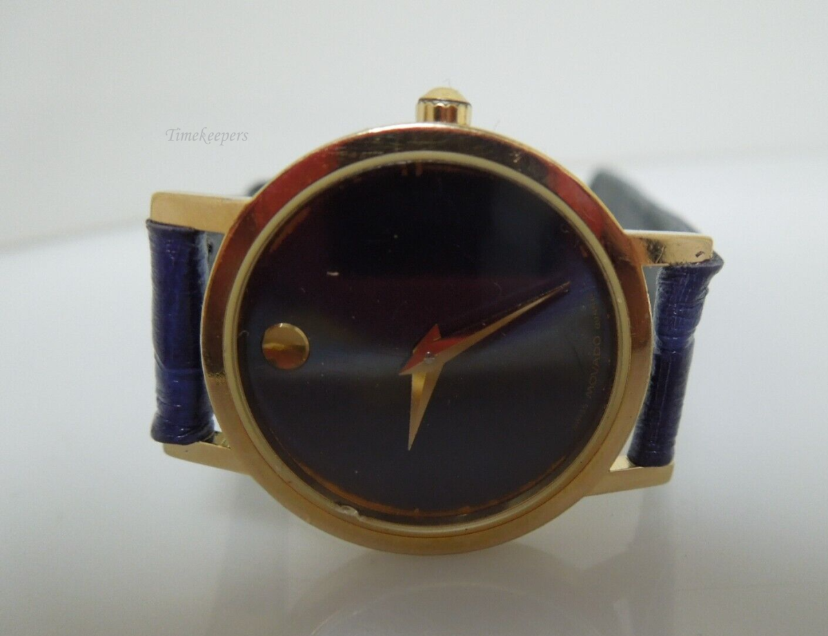 Pre-owned Movado 87.A1.832 Ladies Gold Tone Blue Museum Dial Ladies Watch.