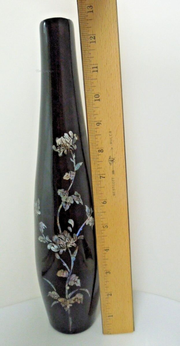 Japanese Black Lacquer with Inlaid Abalone Floral Design Small Vase 12 1/2"(approx.)