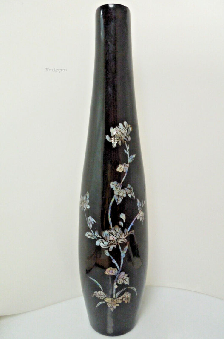 For sale: (1) t116 Vintage Black Lacquer with Inlaid Abalone Floral Design Vase