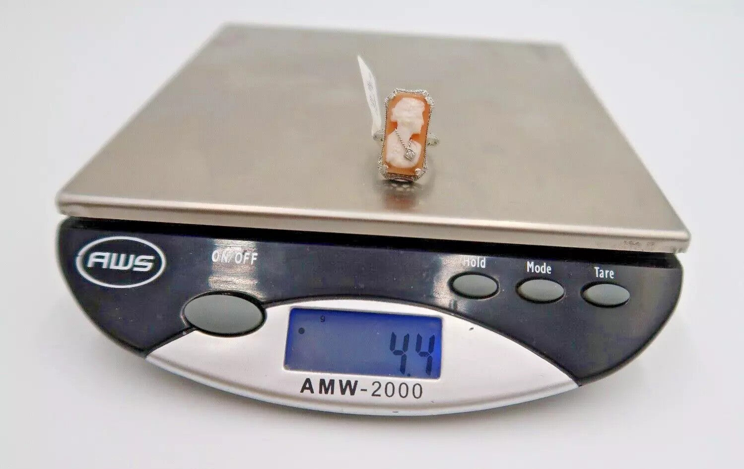 For Sale: (1) t287 14kt White Gold Vintage Shell Cameo Ring