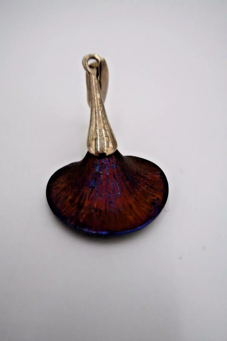 The pendant resembles a calla lily and is handmade in sterling silver and titanium and has a 24ct gold coating.