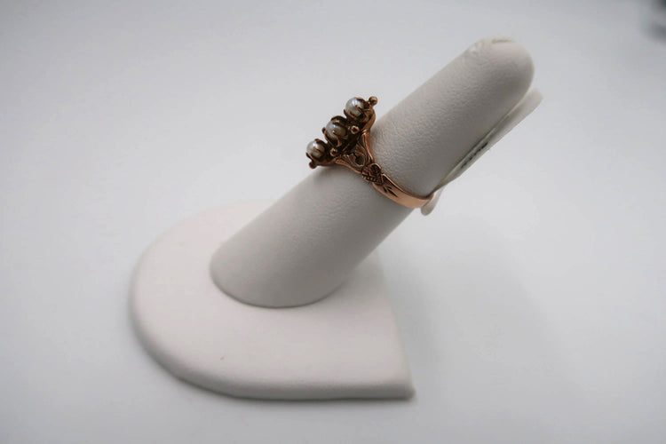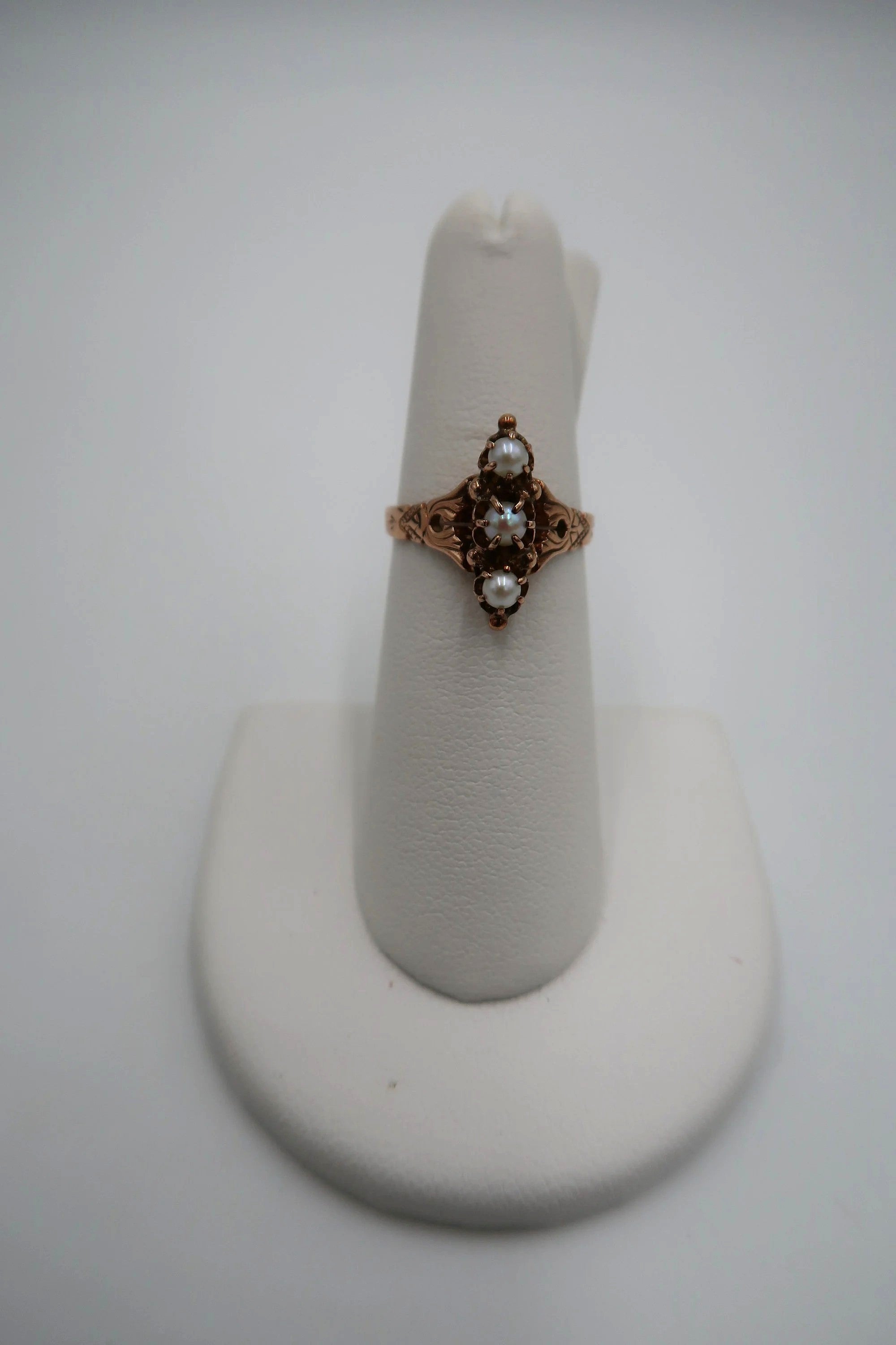 Antique Victorian 14 Karat Rose Gold Triple Pearl Engraved Ring