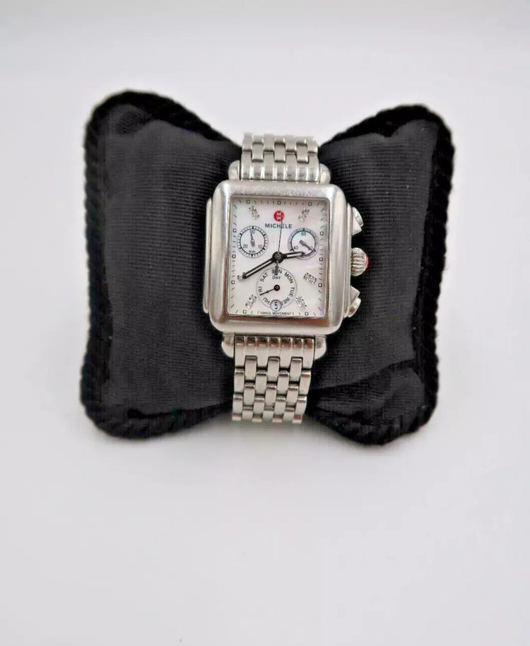 For Sale: (1) t343 Michele Deco Diamond Stainless Chronograph Women's Watch