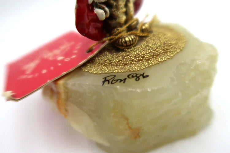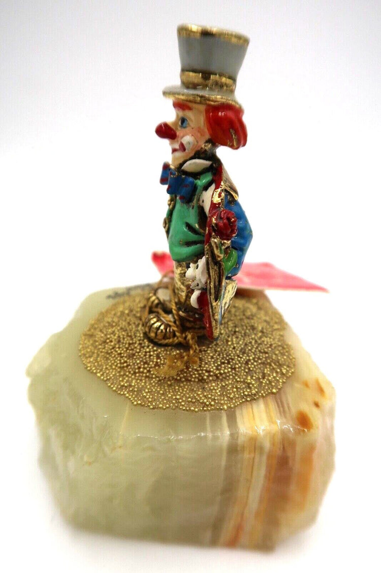 Vintage Signed Ron Lee Collection Hand-Painted 24K Gold Plated Clown Top Hat Open Coat Puppies Figurine in Pocket with Original Tag 4" H Signed Ron 086