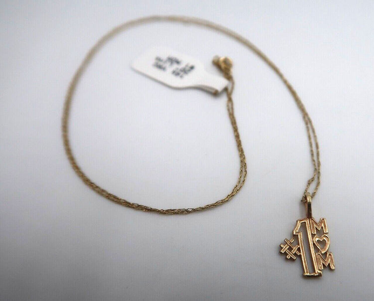 For Sale: (1) t385 14k Yellow Rose Gold #1 MOM Pendant 20"