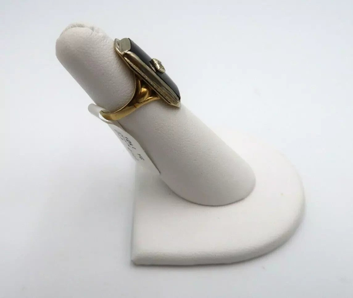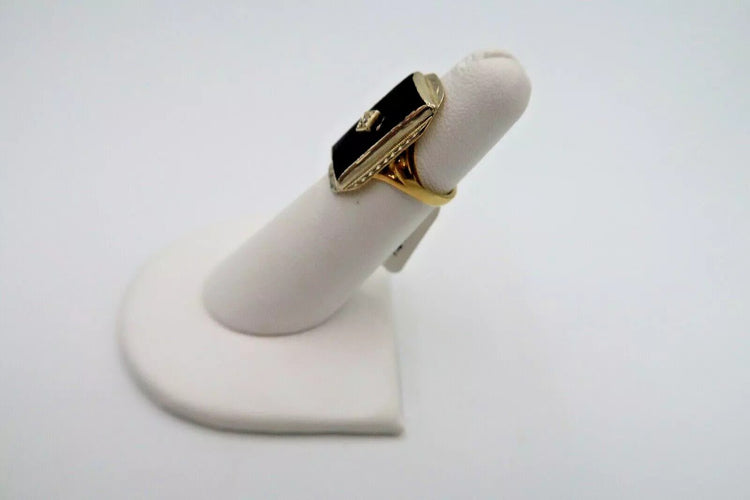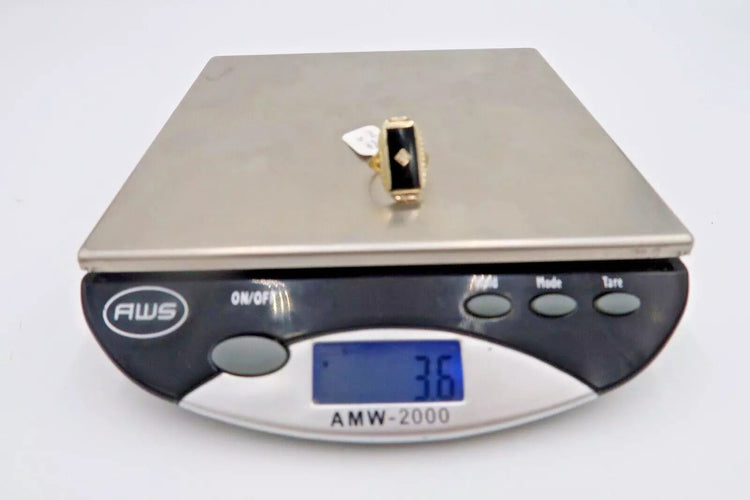 t427 10k Yellow Gold Diamond .01 cts Onyx Ring Size 4(US)Signed