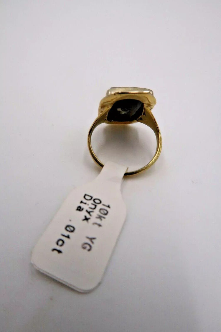 Offered here is 10k Yellow Gold Diamond .01 cts Onyx Ring
