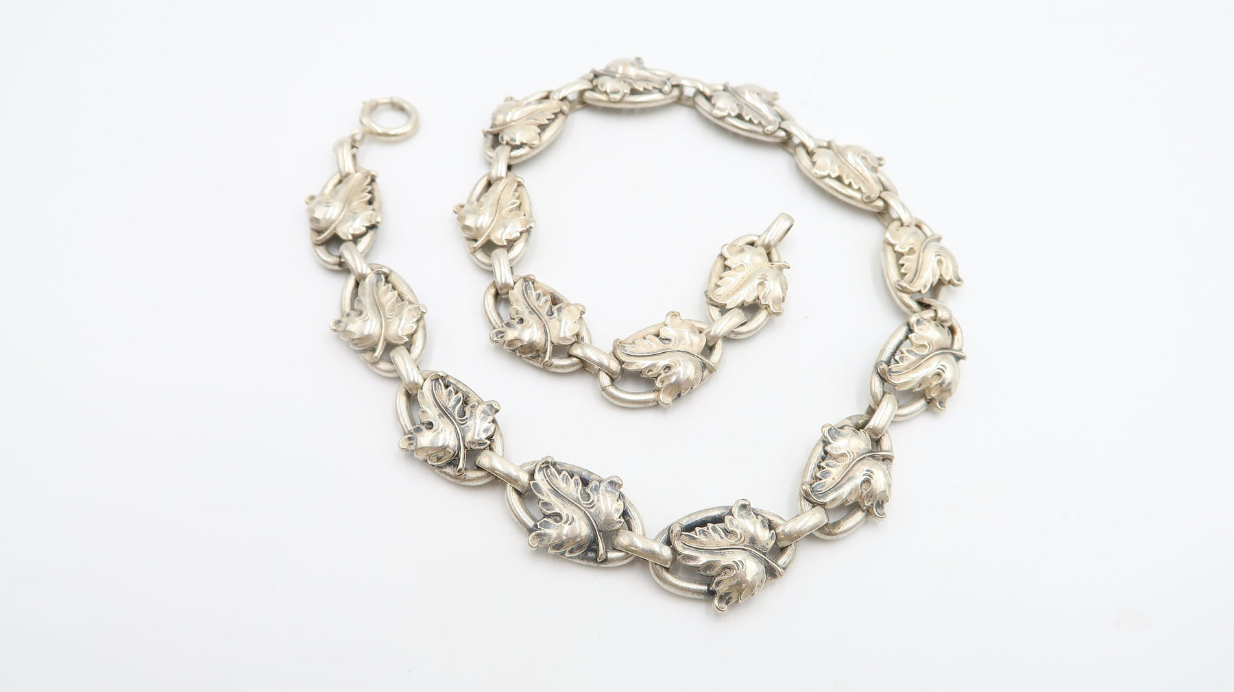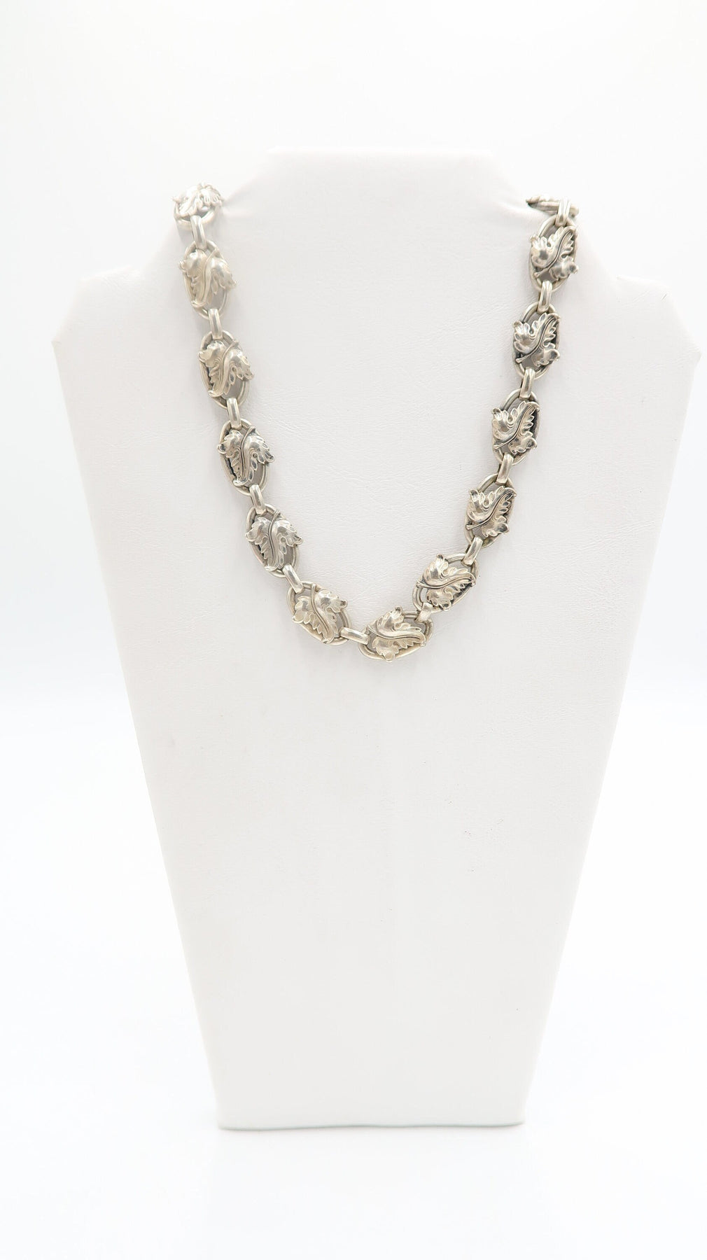 Sale (1): t451 Vintage Jewelry 1950s Mid-Century Leaf Oval Links Necklace 17"