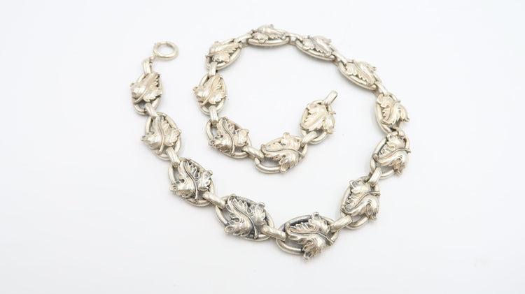 t451 Vintage Jewelry 1950s Mid-Century Leaf Oval Links Necklace 17"