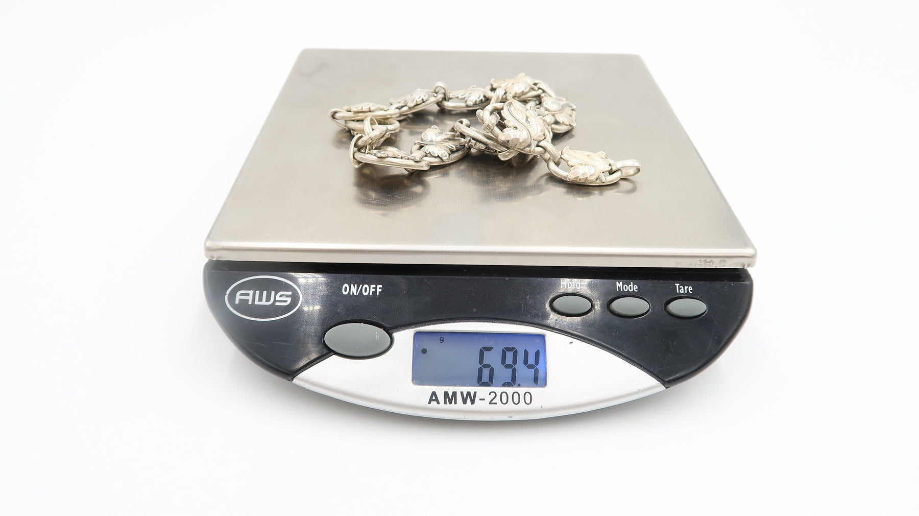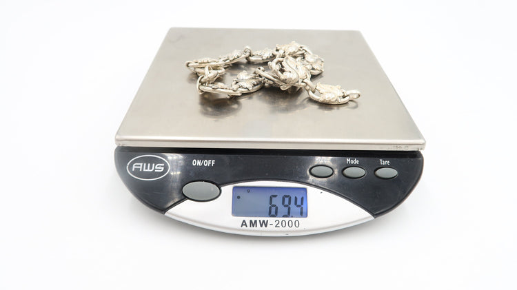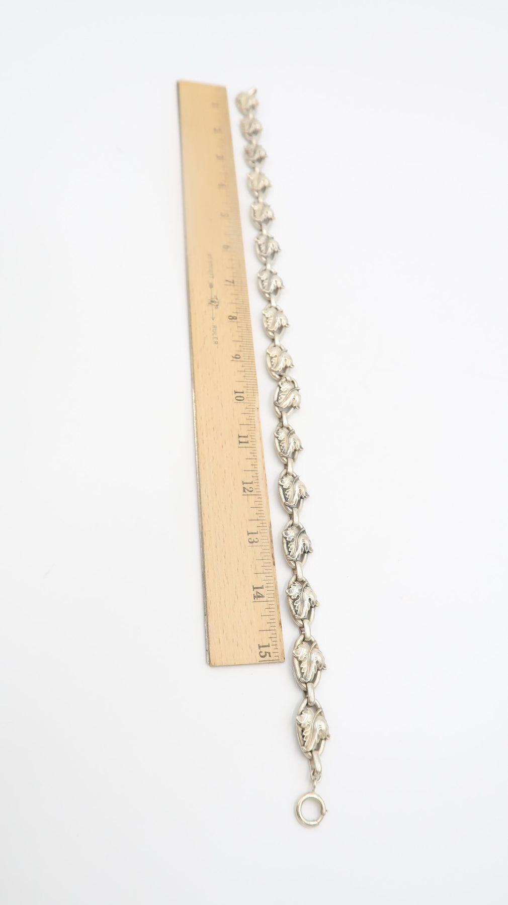 Elegant vintage string silver jewelry, mid-century leaf oval link Necklace.