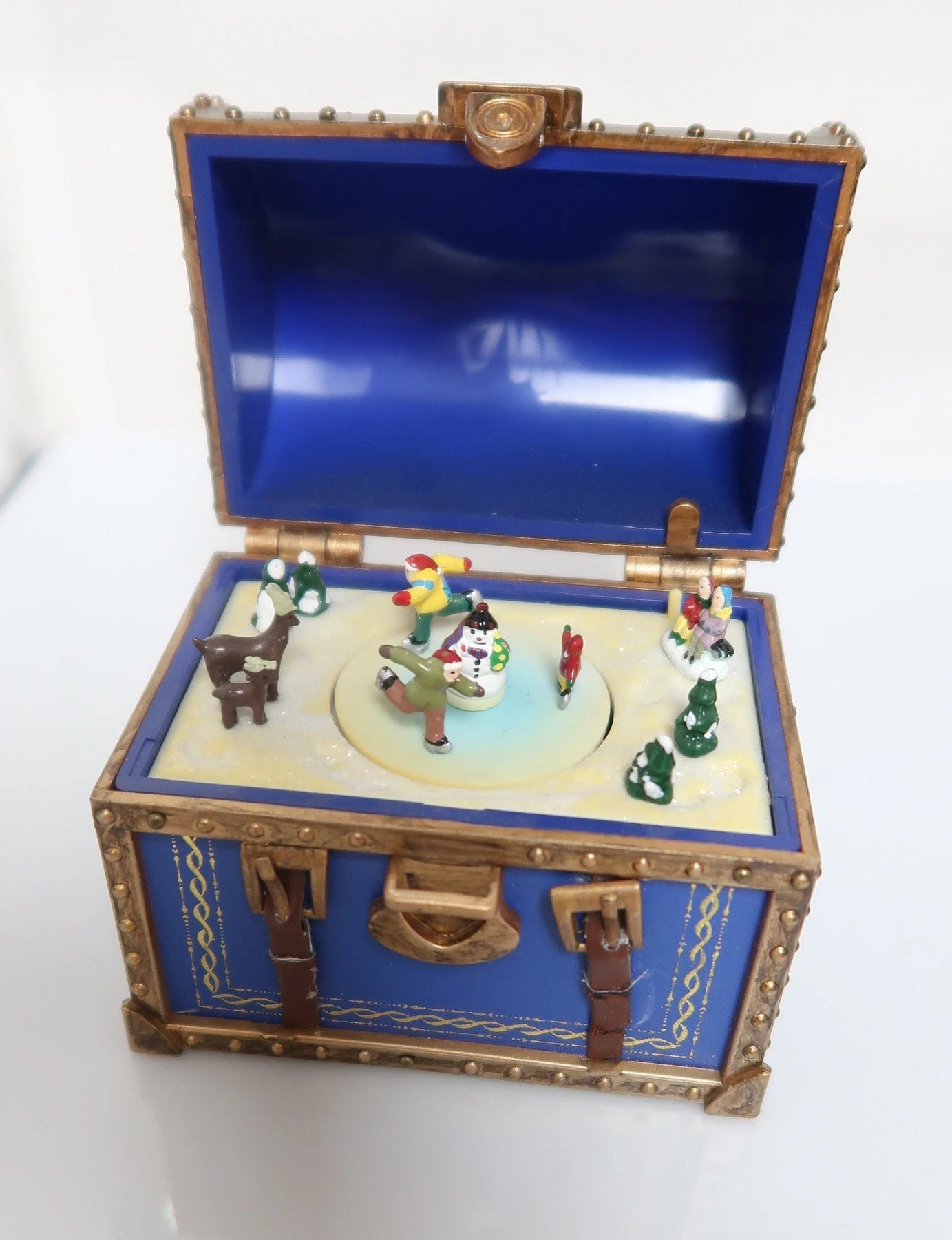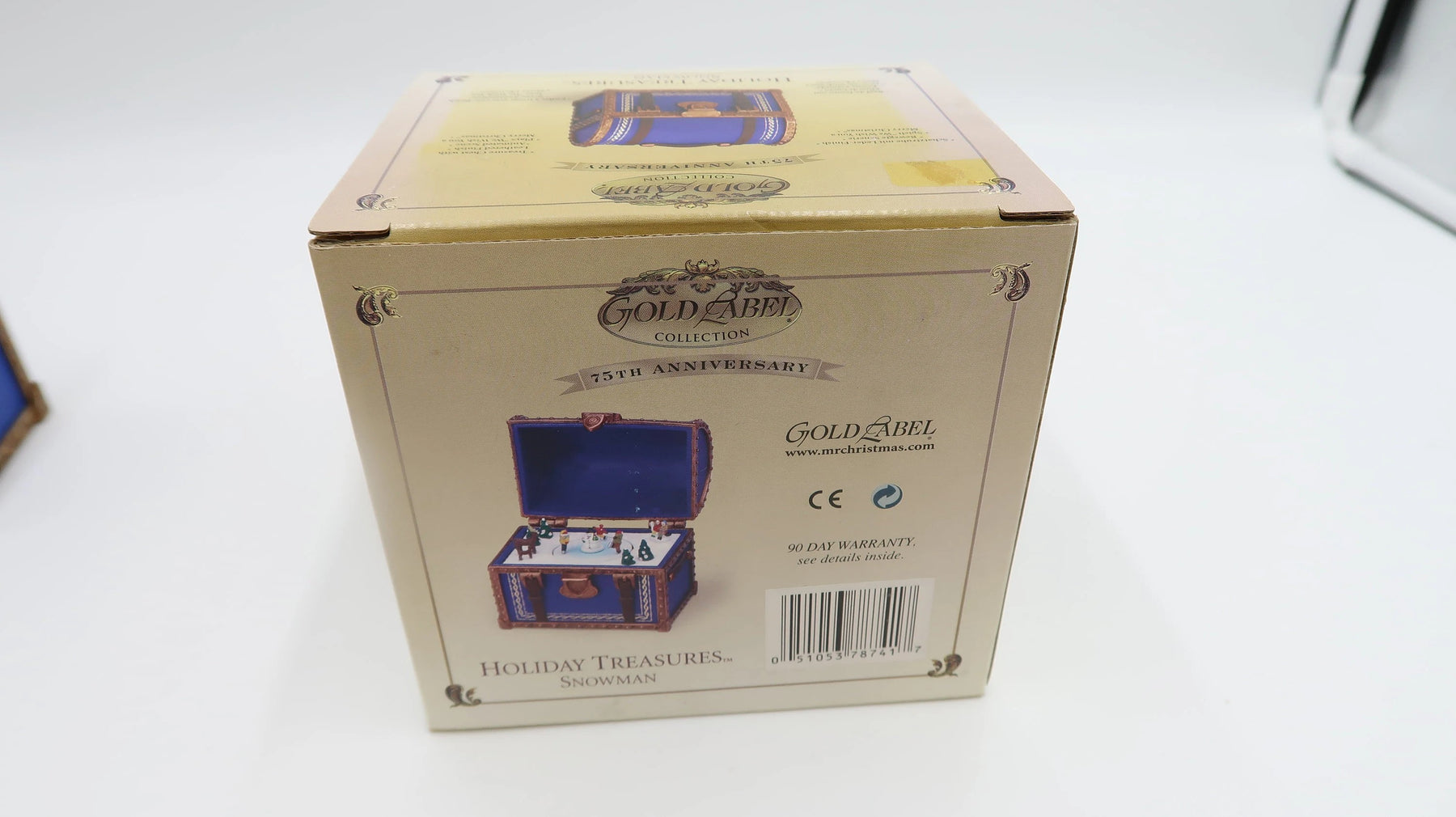 NIB Mr. Christmas Gold Label Collection Animated Animated Music Box Holiday Treasures Snowman treasure Box Christmas