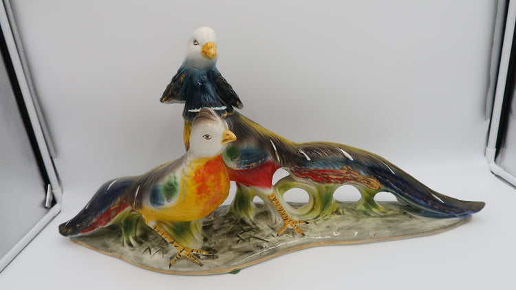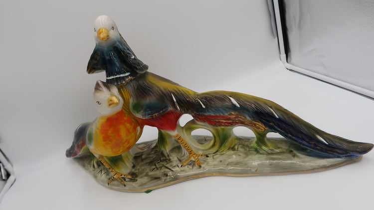 Stunning Mid century Italian Ceramic Pheasants Pair, Majolica ,Sculpture Made in Italy 1930's-1950's , Showstoppers. True work of Art !!