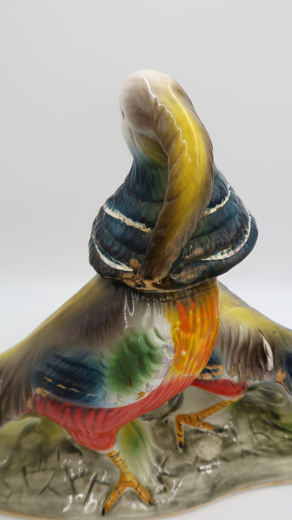 For Sale : t545 Rare Italian Glazed Ceramic Pheasant Pair Sculpture Majolica Mid Century Large