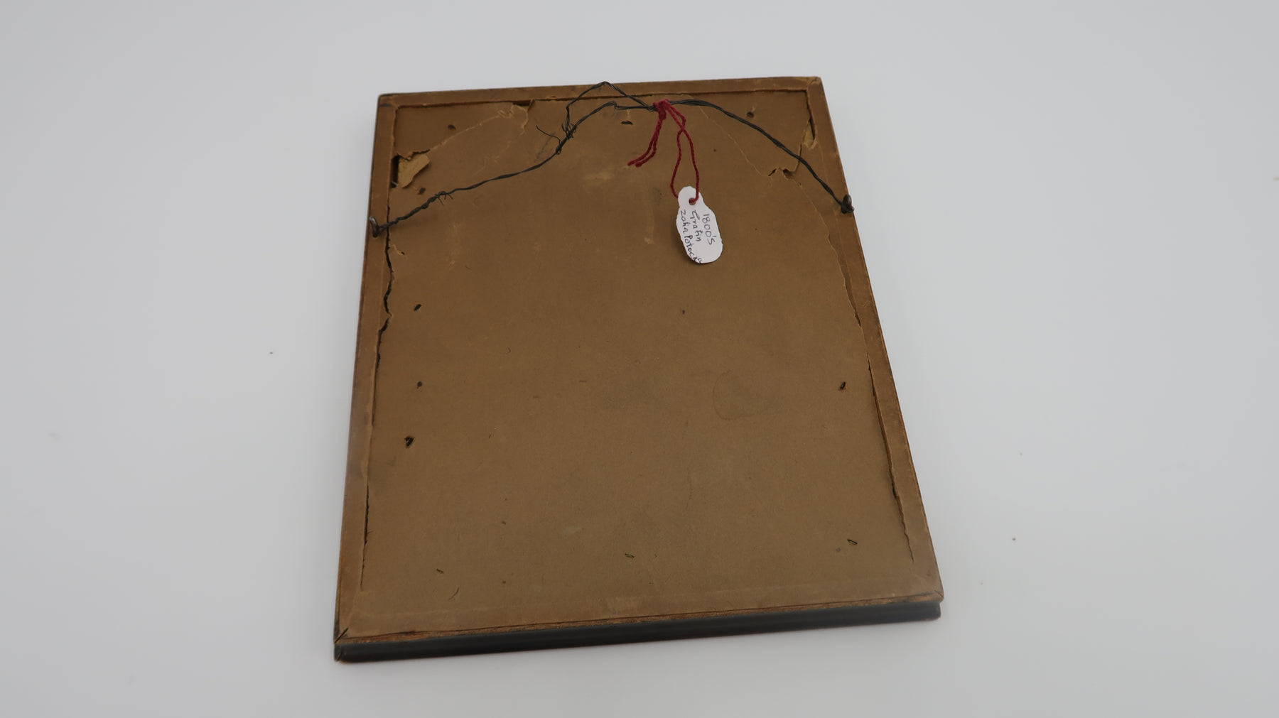 It's in good condition and measures 7 1/2 inches by 6 1/2  inches framed.