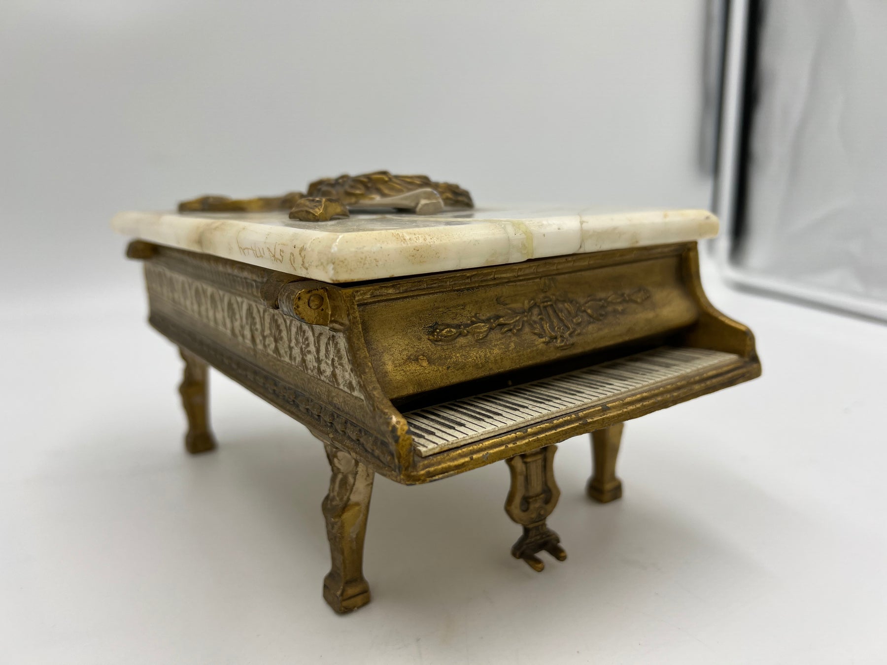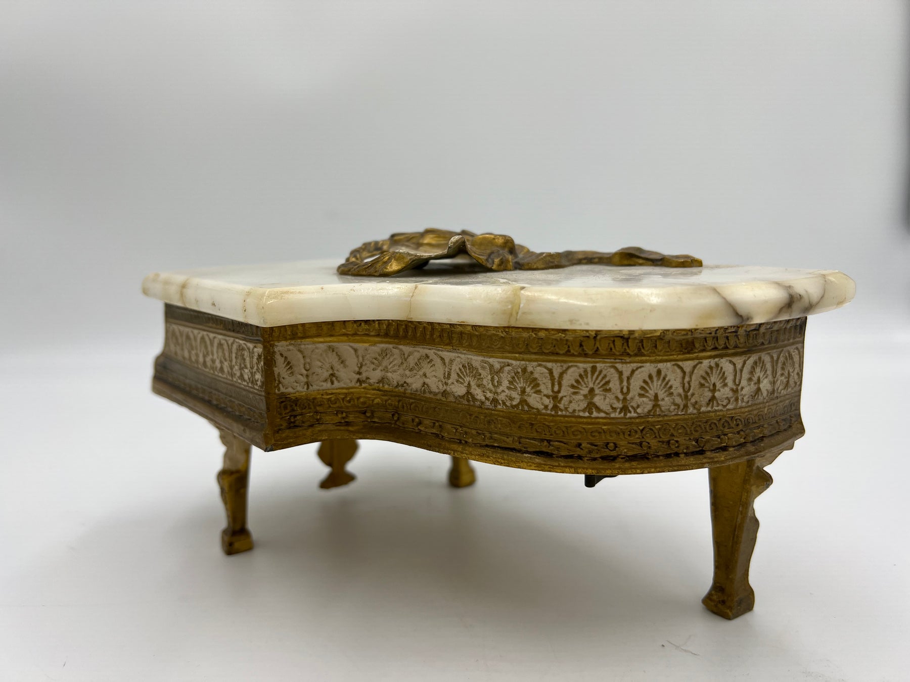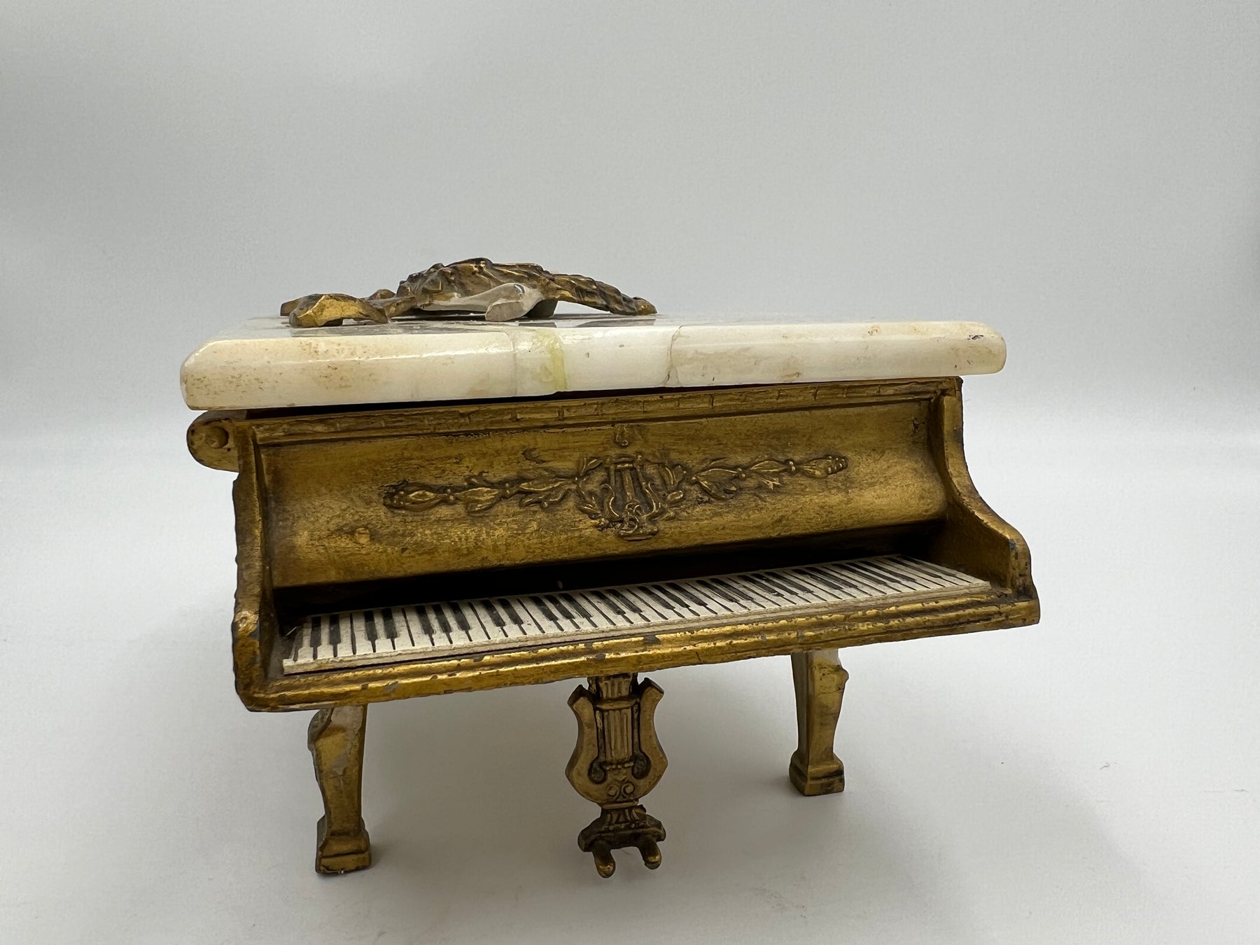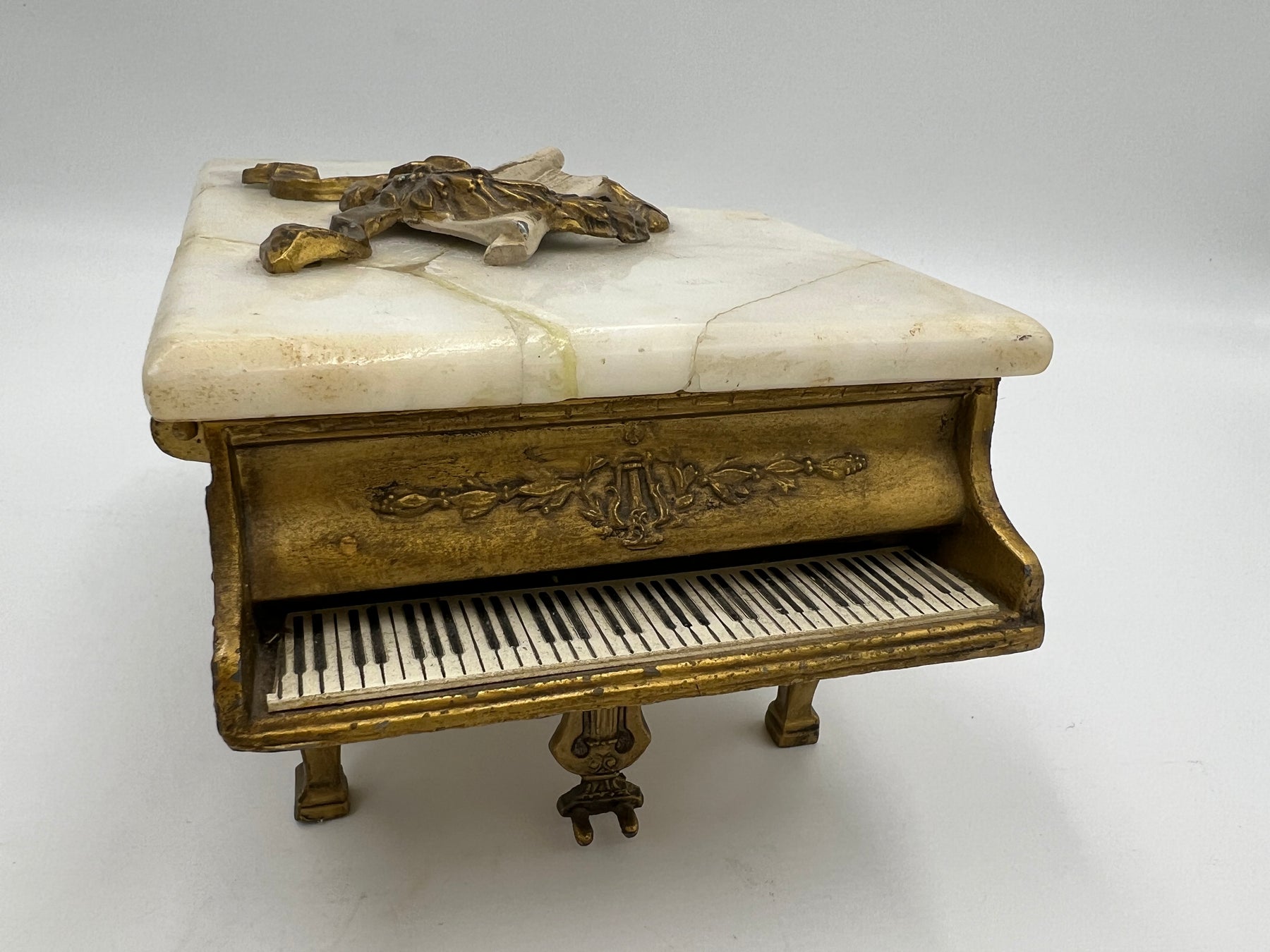 This Thorens piano music box is in good vintage condition. Used as an art decoration having a marble top. The marble has been broken once before but now has been repaired and is in good working condition.