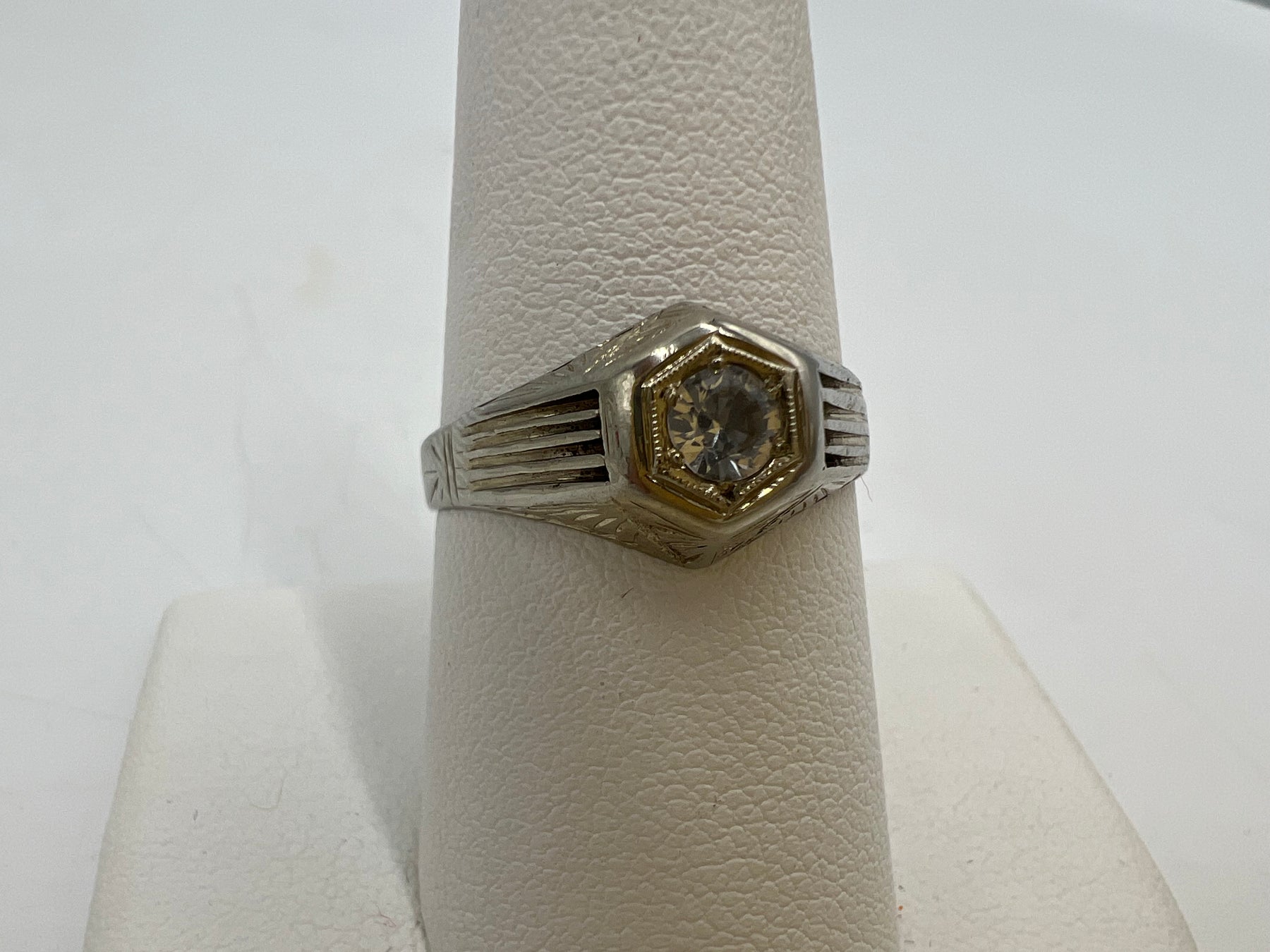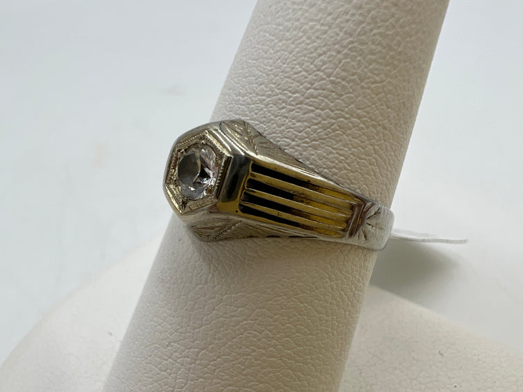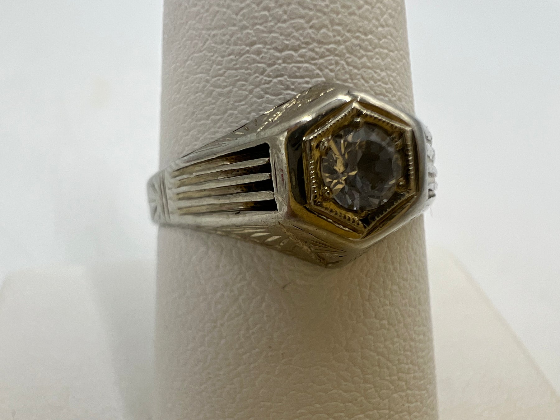 For sale: (1) t744 Beautiful Vintage White Gold Cubic Zirconia Ring