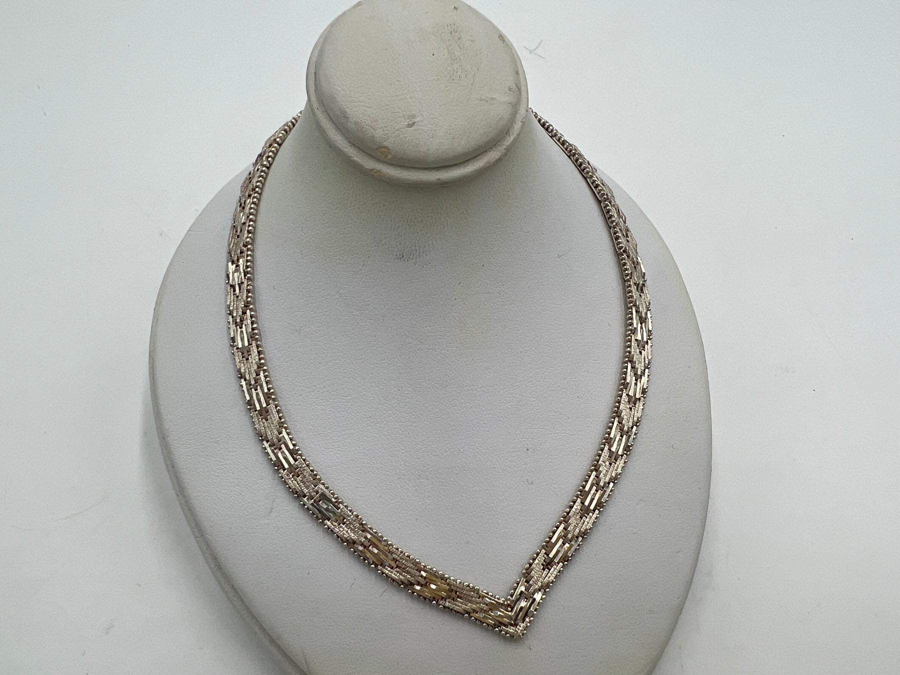 Necklace is 15 1.2 inches in length. 29.7 grams.