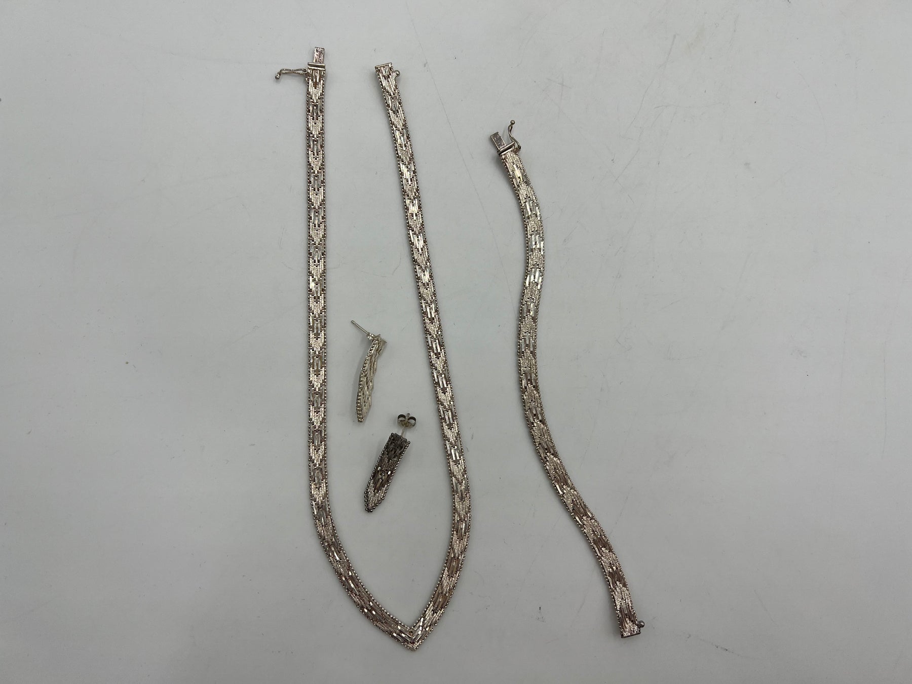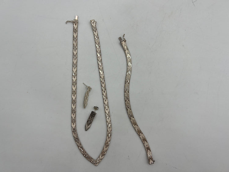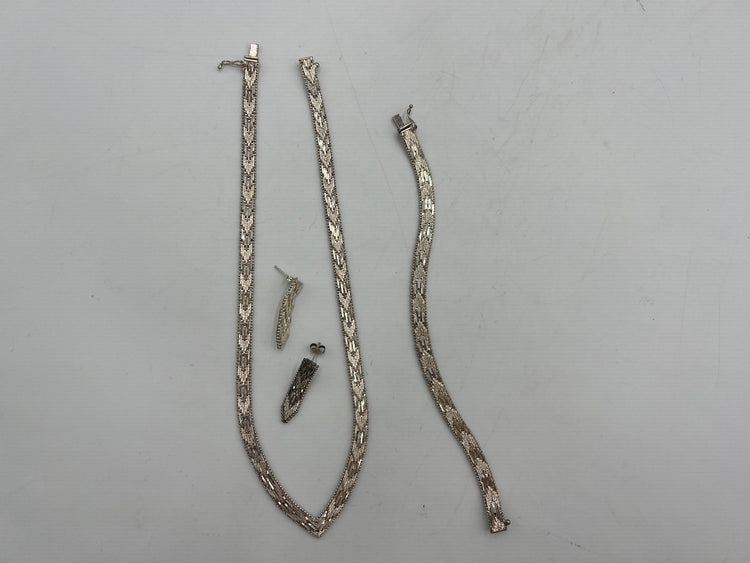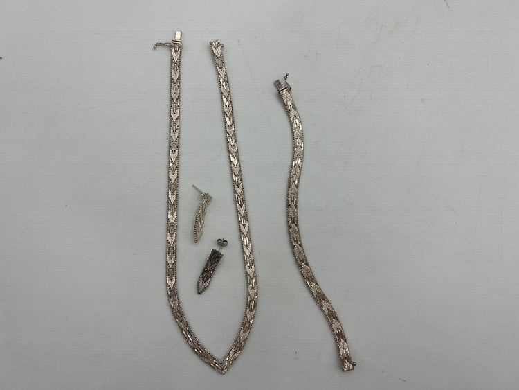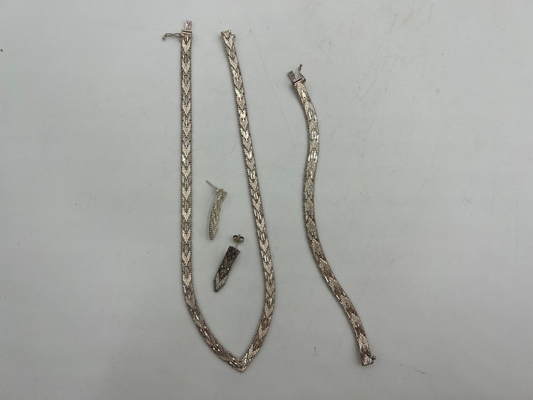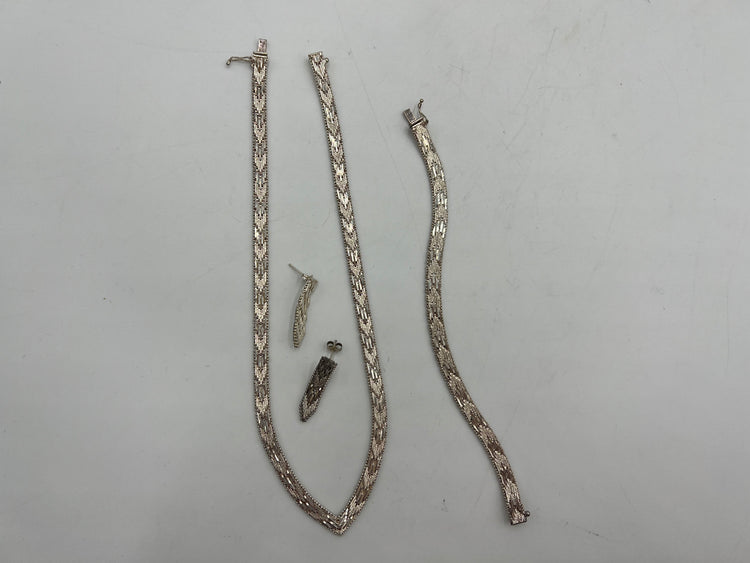 Add a touch of elegance and style to your jewelry collection with this beautiful Sterling Silver Woven Chevron Chain Set. Crafted from high-quality 925 Sterling Silver, this chain set is a perfect addition to any outfit. The intricate weaving design adds a unique touch to a classic chain style, making it perfect for any occasion. The chain set features a high-quality Sterling Silver base metal that is durable and long-lasting. The Beauty theme adds a touch of sophistication and charm, making it a great gift for your loved ones. The main stone is absent, making it a perfect fit for any outfit. Whether you're looking for a formal or casual look, this chain set is the perfect choice.